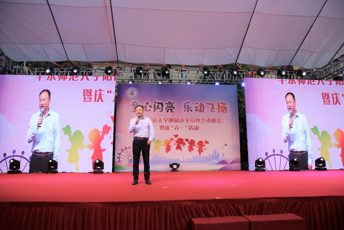 5月31日晚上,副校长兼基础教育集团主任戴立益、机关党工委书记王淑仙、工会副主席王平、基础教育与终身教育处副处长韩楠、团委书记刘麒等嘉宾参加了beat365英国官网网站附属小学草坪音乐会。戴立益在晚会现场表达了多个“羡慕”:羡慕当代的小学生,等到本世纪中期,伟大民族复兴了,政治、经济、文化、社会、生态文明都实现了,将是实现中国梦的见证者亲历者和建设者;羡慕小朋友们在国家高度重视教育的美好的新时代,接受着高质量的基础教育;羡慕在华师附小的小朋友,华师附小几乎与beat365英国官网网站同龄,是多少人心中向往的校园,学校将会让每一个小朋友变得更加健康、更加高尚、更加聪明。