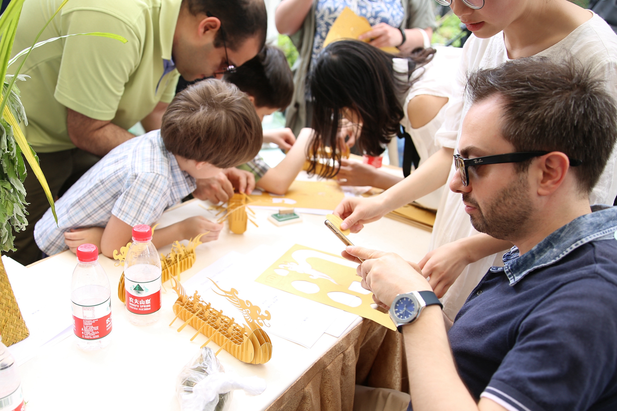 按照传统的习俗,过端午要避五毒,在这场特别的端午民俗游园会上,外交官们也得以初次体验了扎五毒这一民间风俗。另外,活动现场还准备了刻有端午元素(粽子、屈原、艾草等)的版画,外交官们纷纷将版画拓印在宣纸上,亲手制作一份端午节的祈福卡。“赛龙舟”是端午节另一项必不可少的活动,外交官们边学边做,制作出一个个精美的“纸龙舟”,给自己留下了一份独特的纪念和回忆。
