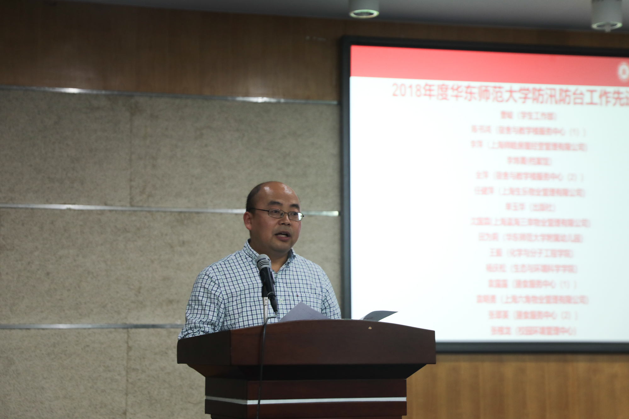 会上,学校防汛防台工作领导小组副组长、学校办公室主任潘靓总结了我校2018年防汛防台工作开展情况。对于汛前、汛中、汛后的具体工作落实情况作了介绍,他指出去年上海经历了3个台风的正面袭击,但是我校没有出现“看海模式”,说明去年的各项应对措施是成功的、有效的、可靠的。他希望大家再接再厉,出色完成今年的防汛防台任务。