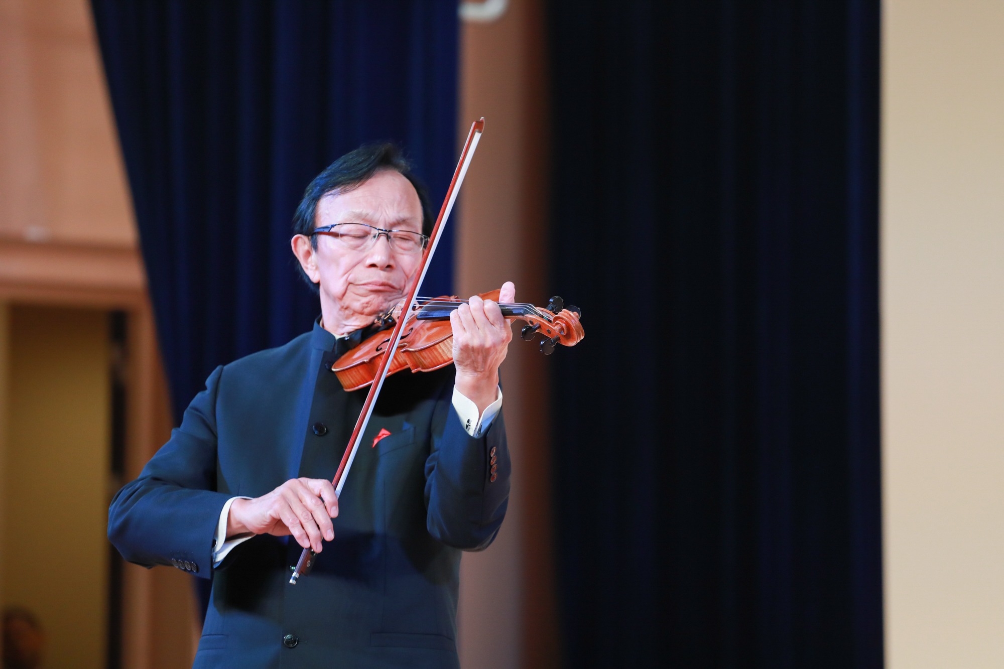 谢幕时,刘育熙教授深深鞠躬的身影与观众络绎不绝的掌声形成了一幅壮美的画面。刘育熙自12岁开始学习小提琴,至今近七十载,技艺精湛,赢得观众的热爱。教学之余,他致力于中国小提琴艺术的探索和高雅艺术的普及,在国内举办了五百余场音乐会,为教育青年而身体力行,受到广大观众的欢迎。