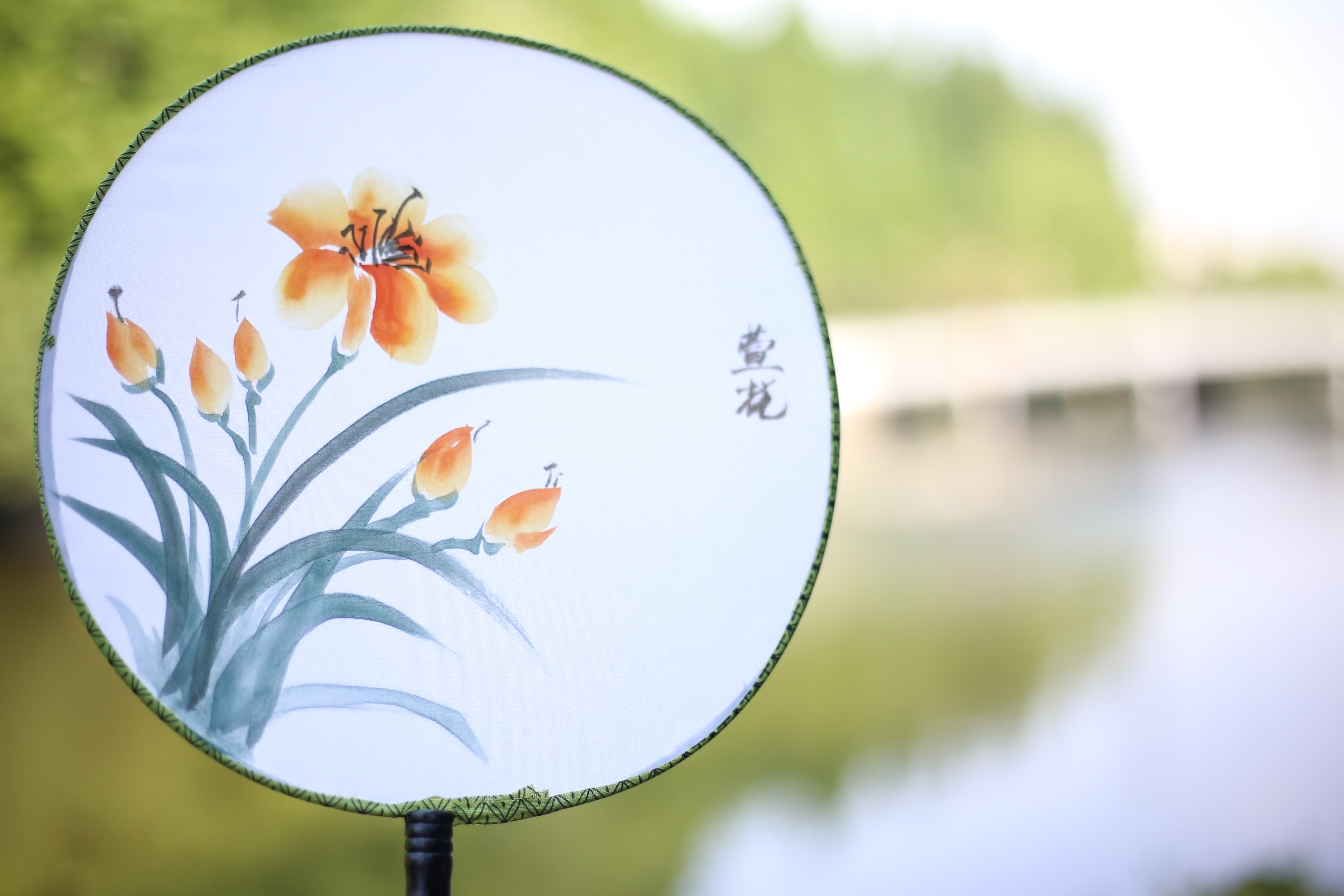 手绘萱花团扇