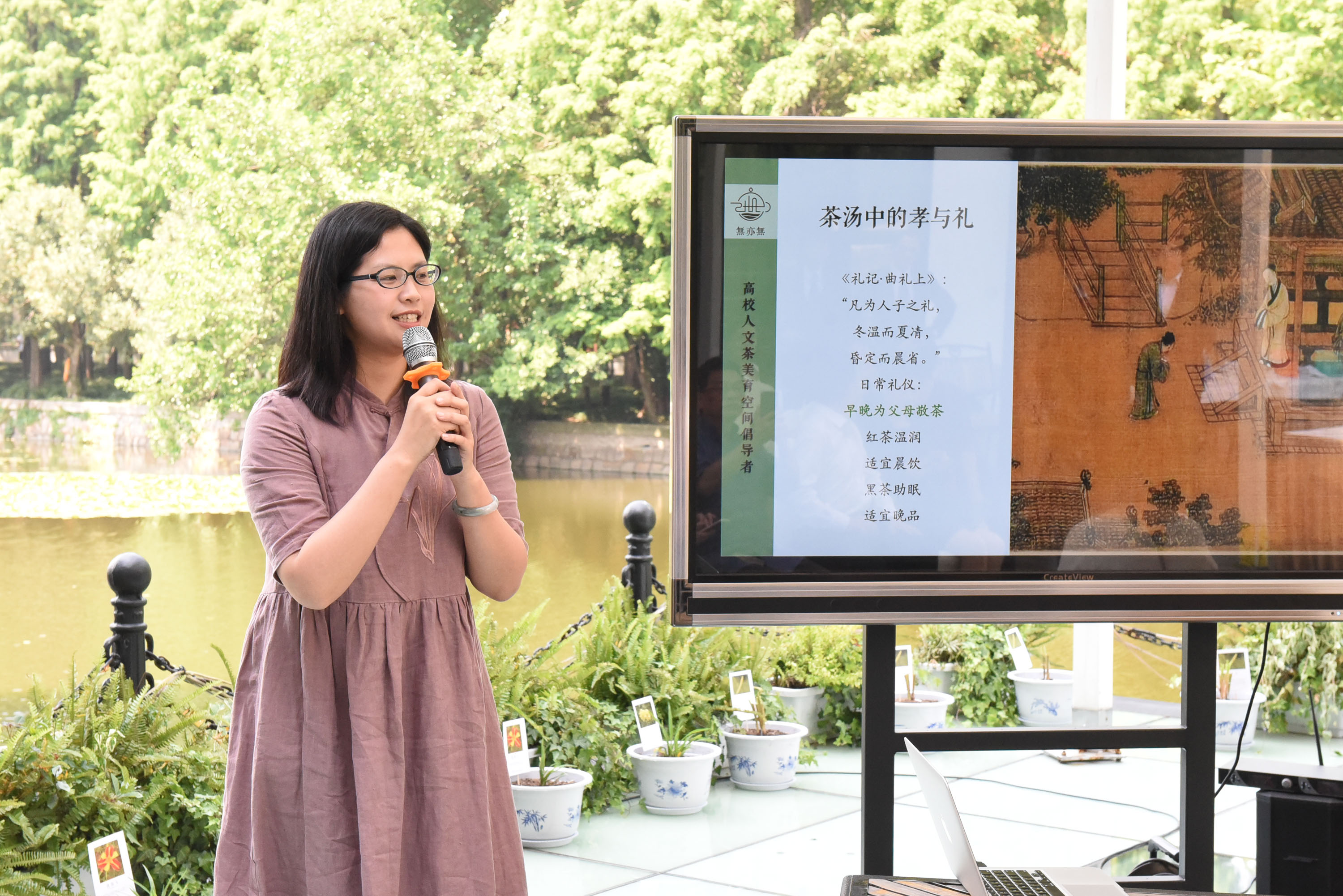 首届萱花文化节活动现场,由民俗学研究所博士张海岚根据《仪礼》编排的少儿“孝道”敬茶礼受到社区居民的欢迎,小朋友们在张博士和团队小伙伴的带领下,学习敬茶礼,恭恭敬敬给妈妈敬上一杯孝道茶。