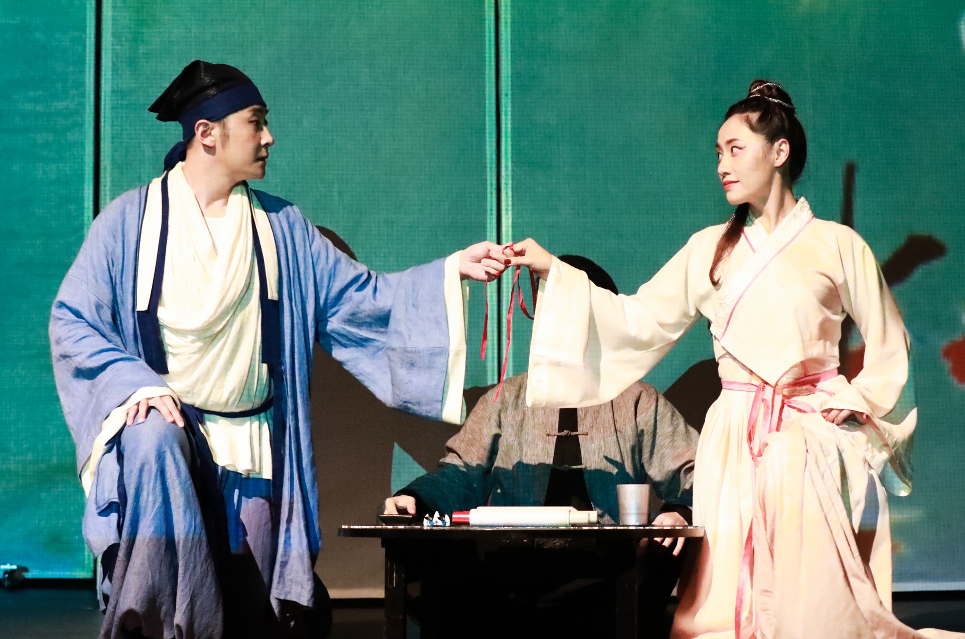 黑暗中,一束绚丽的光芒横贯演出厅上方,白色的幕布上映照出一幅幅水墨图景,舞台一侧,一个布衣男子正缓缓讲述一个流传许久的故事。这正是4月25日晚于我校大夏舞台上演的、由上海话剧艺术中心出品的多媒体舞台剧《白蛇传》。