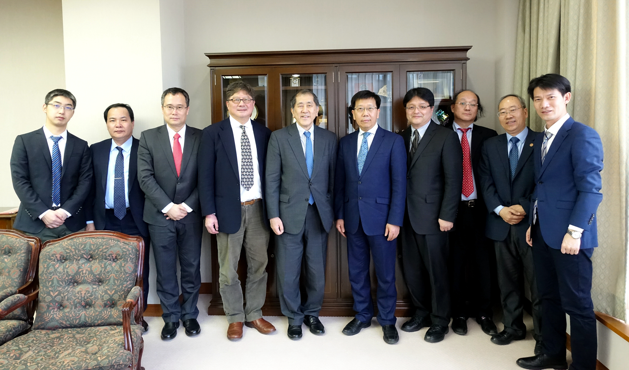 当日上午,钱旭红率代表团拜访了我国驻日大使馆教育处,拜会胡志平公使参赞,希望使馆教育处支持我校对日高校交流与合作。胡志平公参热情呼应钱旭红校长的建议,鼓励加强合作交流、信息共享,为两国友好建路搭桥。使馆陈会林一秘、安载鹤一秘参加会谈。