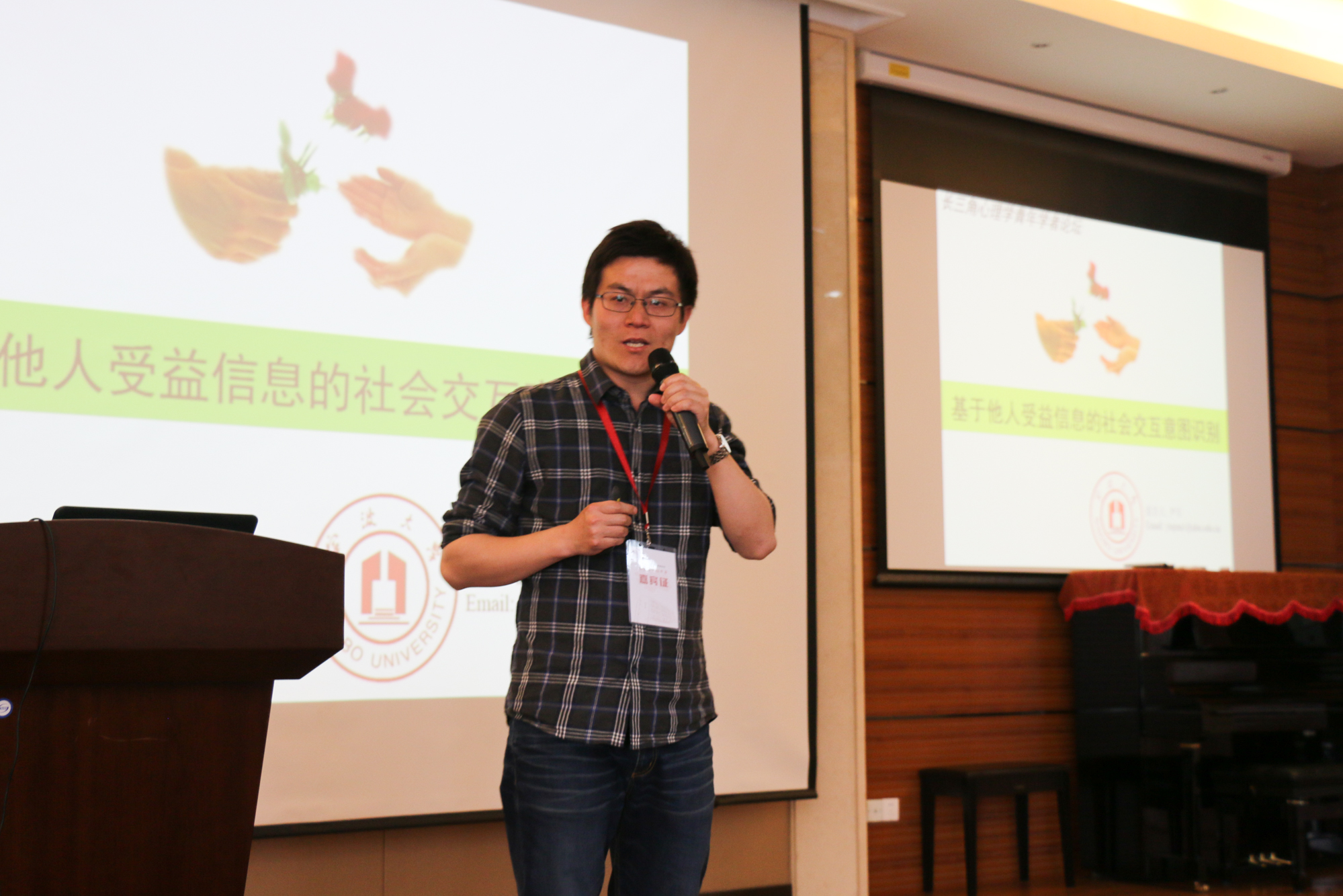 19日下午的专题报告(一)为“社会心理与健康”专场。南京师范大学副教授徐慰、宁波大学副教授尹军、beat365英国官网网站副教授宋永宁、上海交通大学胡杨老师、beat365英国官网网站教授段锦云进行了学术报告,主题涉及基于动态评估的正念测量与研究、基于他人受益信息的社会交互意图识别、自闭谱系障碍儿童的表情模仿、精神障碍中顶叶记忆网络的研究,以及心理距离对创业机会识别的影响。