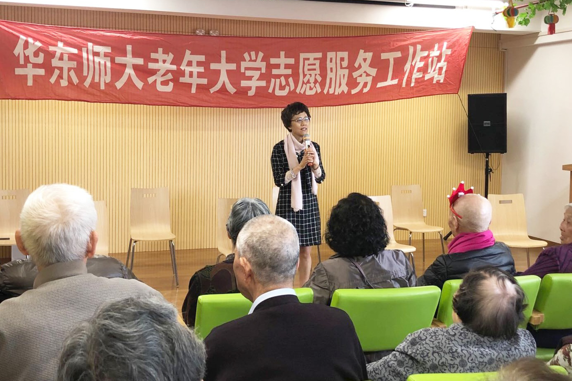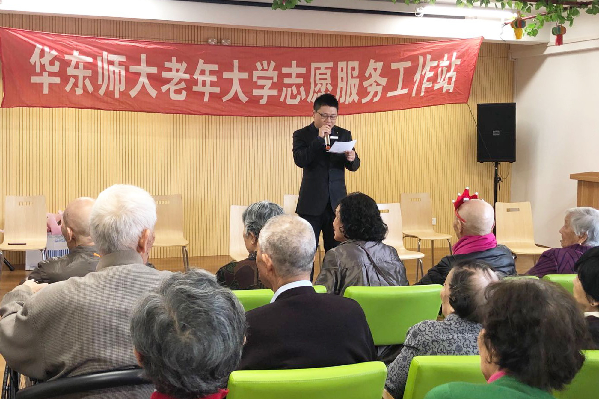 首先,福象养老院院长汪思冲对志愿者们的到来表示感谢。随后裴建华致辞,祝贺高龄及百岁老人们健康长寿,并为老人们送上真诚的祝福。