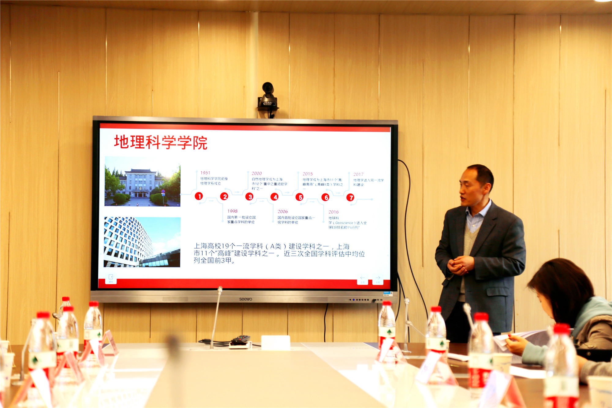 在调研会议上,王东启首先对市教委、科委联合授予上海市“地理科学”实践工作站表示感谢,对各位领导、代表的来访表示欢迎;随后,针对实践工作站的建设背景、整体情况、工作站课程设置及工作计划进行了详细汇报。