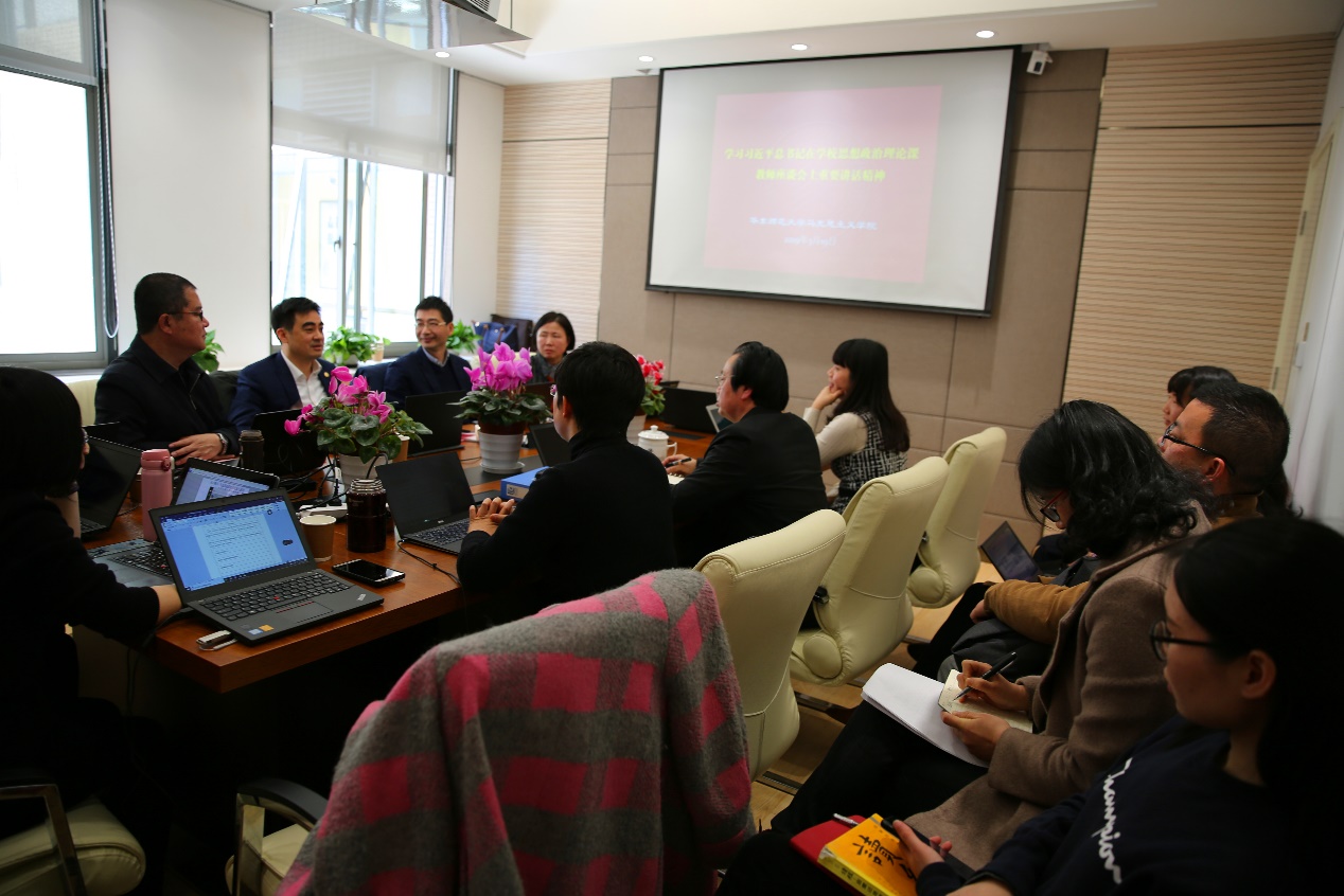 马克思主义学院常务副院长王建新汇报了马克思主义学院近年的发展和未来的工作建设规划,并就影响我校思想政治理论课建设发展的主要瓶颈和解决方案,结合习近平总书记在学校思想政治理论课教师座谈会上的重要讲话精神谈了自己的看法。