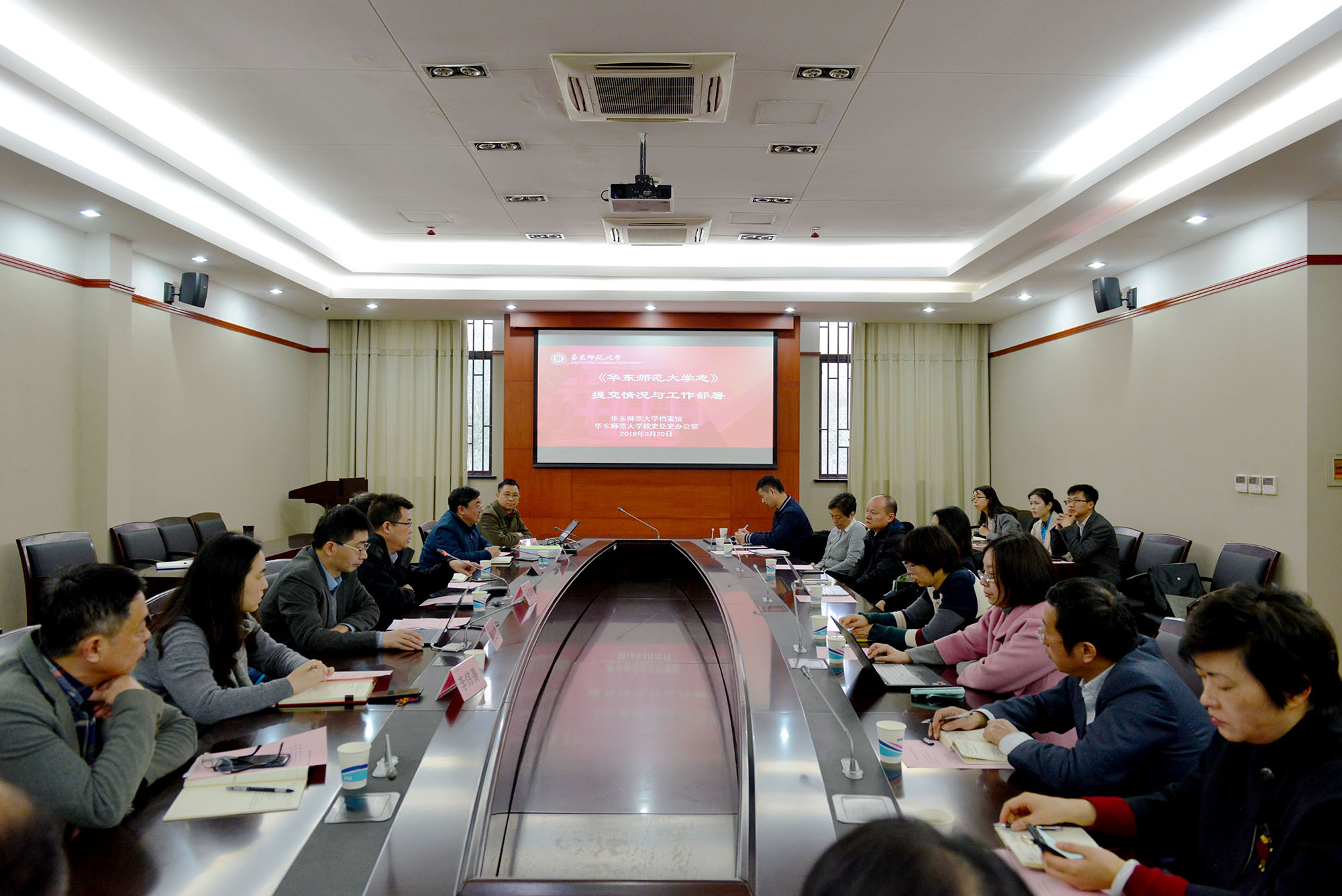 3月20日上午,beat365英国官网网站校志工作推进会在中山北路校区档案馆会议室召开。校党委常委、副校长孙真荣,校党委常委、宣传部长顾红亮出席会议。学校办公室、组织部、传播学院、图书馆等22家单位党政负责人参加会议。会议由校史党史办主任施家仓主持。