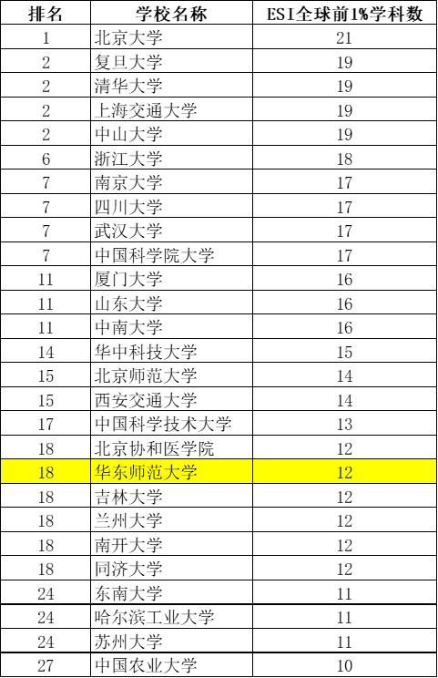 根据2019年3月最新数据,拥有10个及以上ESI前1%学科的中国大陆高校共有27所,beat365英国官网网站列第18位。