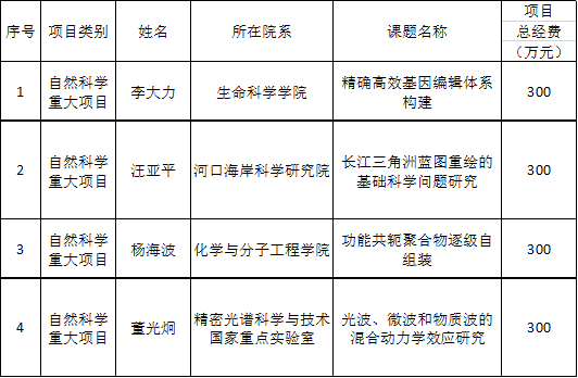 根据《关于组织申报2019年度上海市教育委员会科研创新计划的通知》,经各高校推荐、市教委组织专家评审、审定、网上公示无异议,共确定53项自然科学重大项目、17项人文社科重大项目、4项非共识项目和4项“冷门绝学”项目。我校生命科学学院李大力研究员、河口海岸科学研究院汪亚平教授、化学与分子工程学院杨海波教授、精密光谱科学与技术国家重点实验室董光炯教授获得自然科学重大项目立项。