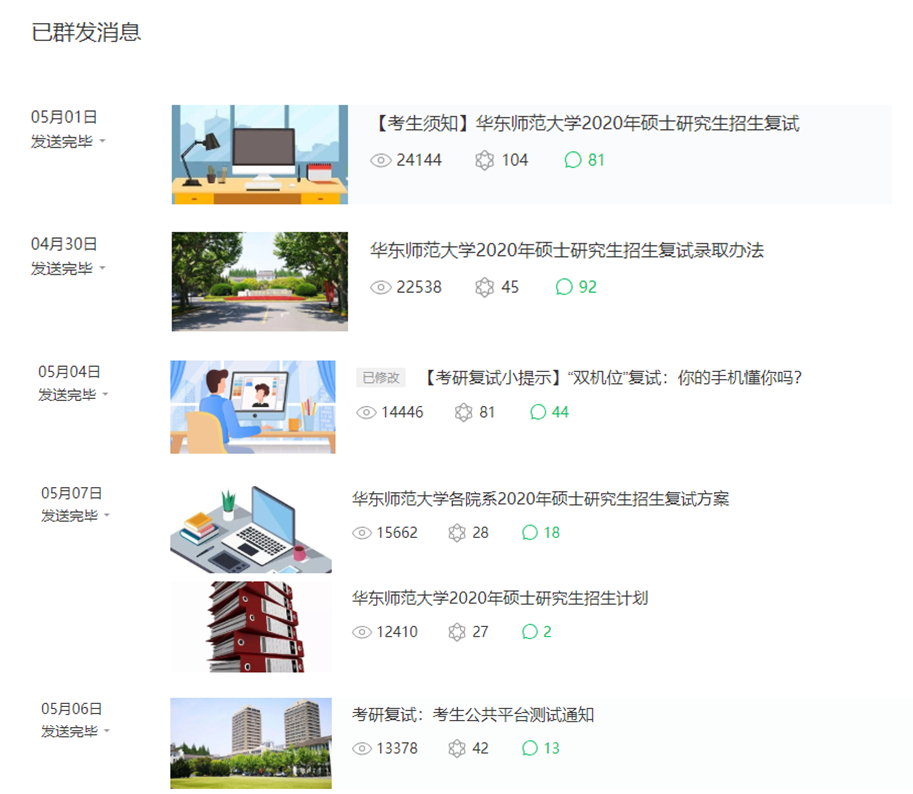通过“beat365英国官网网站研招”微信公众号为考生推送复试相关信息