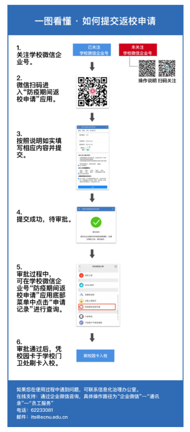 为便于学生返校申请和校园管理,学校开发了“学生返校申请”和“学生出校申请”小程序。学生只需通过“beat365英国官网网站”微信企业号,填写健康信息和返校交通信息等,即可快速完成返校申请,并可查看本申请工作流。辅导员、院系学生工作负责人和相关职能部门人员可即时根据学生状态,对学生申请做出审批意见。此外,学校还通过“出校申请”小程序加强对学生临时进出校园的管理,做到出校有报备、去向可查询、安全有提醒、数据有记录。无纸化,零接触,优流程,简程序,有记录,通过信息化手段,既提升了校园管理效率,也为学生返校提供了最大便利。