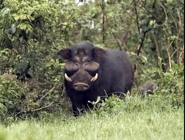 其中大林猪生活在非洲中部的林地中,体长1.3-2.1米,体重约为100-275公斤,被认为是平均体型最大的猪科动物,毕竟不同地区的欧亚野猪体态悬殊。它们长相剽悍,脸上两个大鼓包,一看就不好惹。事实上大林猪的确性格凶猛,攻击性很强,它们甚至连斑鬣狗都敢硬扛。