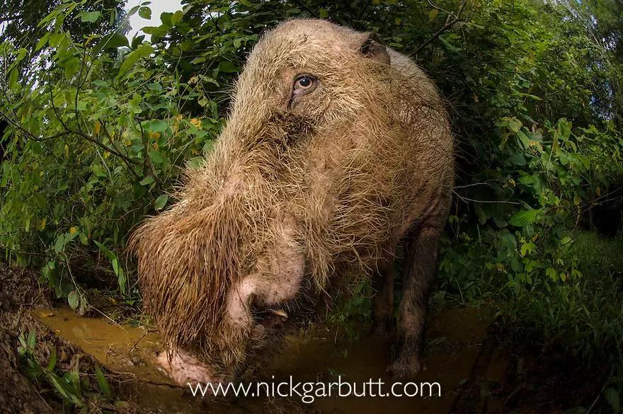 有些极端的案例中,这獠牙甚至会弯到自己的眼窝,影响视力。长成这幅看着就疼的模样,全拜性选择所赐,毕竟这牙完全没办法攻击对手。再加上全身没有毛发,光秃秃的造型和狭长的身材真是一言难尽。没办法,雌性鹿豚喜欢啊。不过幸好,岛上也没有什么强力捕食者,自然选择倒也允许这样奇葩的造型存在。