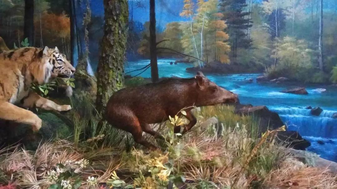 上海自然博物馆的生态万象展区中的野猪生态标本