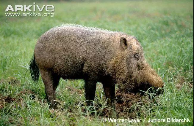猪科中和野猪亲缘关系最近的其他猪属Sus的动物还有7种,它们大多分布于东南亚的不同岛屿中。其中包括两种须猪,分别是须野猪或者叫须猪Bearded Pig或Bornean Bearded Pig(学名Sus barbatus)和巴拉望须猪Palawan Bearded Pig(学名Sus ahoenobarbus)。它们的共同特点就是从鼻梁到头部两侧的下巴上都长着尤为浓密的长毛,就像大胡子一般,这就是它们名字的来历。