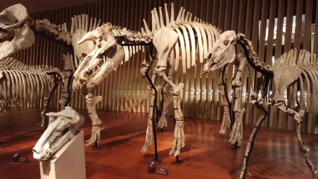 上海自然博物馆巨型库班猪(学名Kubanochoerus gigas)化石(图中)