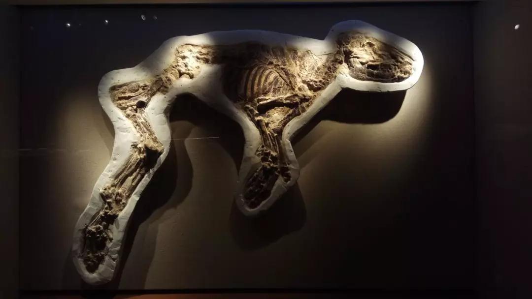上海自然博物馆展出山东山旺发现的半岛猪兽(学名Hyotherium penisulus)化石