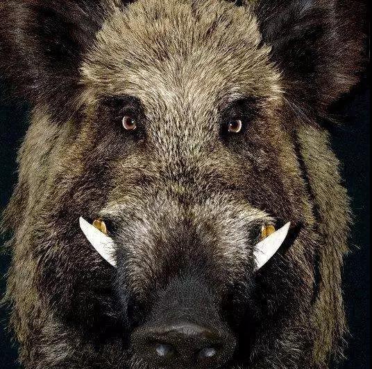 对于野猪而言,超大体型毕竟是少数,它们的主要防卫武器是獠牙。雄性野猪具有两对不断生长的犬齿,这便是它们的獠牙,平均长度能达到6厘米,其中有一半会露出嘴外;雌性野猪的犬齿较短,不露出嘴外,但也具有一定的杀伤力。这样的犬齿既作为挖掘工具,也可以作为重要的搏斗武器。当然,大多数情况下,它们还是会用自己的獠牙老老实实刨吃的。
