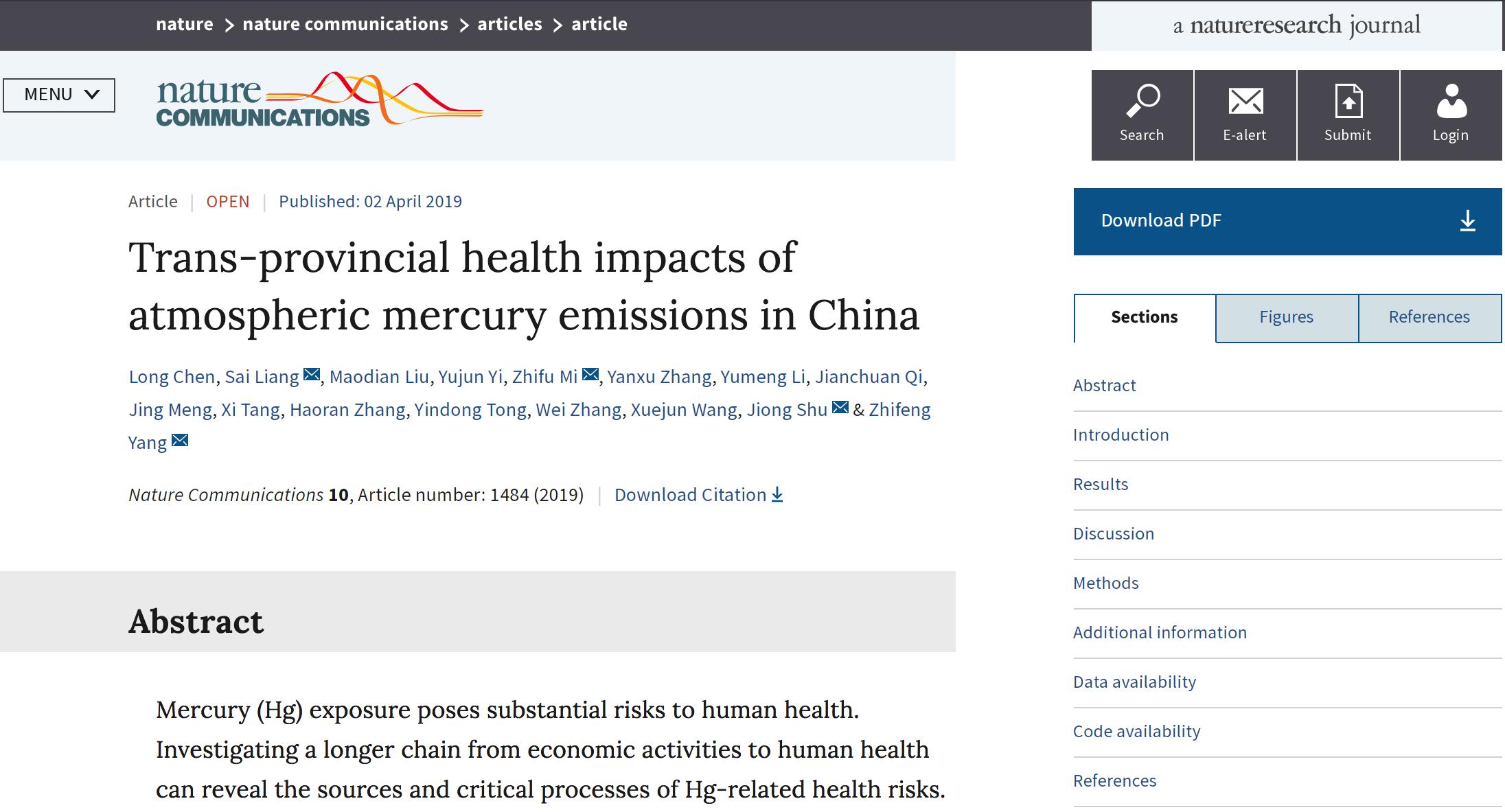 4月2日,我校地理科学学院束炯教授团队及其合作者在《自然》子刊《自然Ÿ通讯》(Nature Communications)上在线发表了题为《中国大气汞排放的跨省健康影响》(Trans-provincial health impacts of atmospheric mercury emissions in China)的研究论文。该研究首次建立了一套描述从经济活动到人群健康风险的汞生物地球化学循环链的方法。运用该方法,研究团队首次绘制了中国大陆人群汞摄入暴露的健康风险地图,从多视角探讨了各地区健康风险来源,最终发现,地区间贸易显著改变了中国人群的健康风险。该研究为加强中国地区间合作并从多视角来履行汞的《水俣公约》提供了崭新思路。