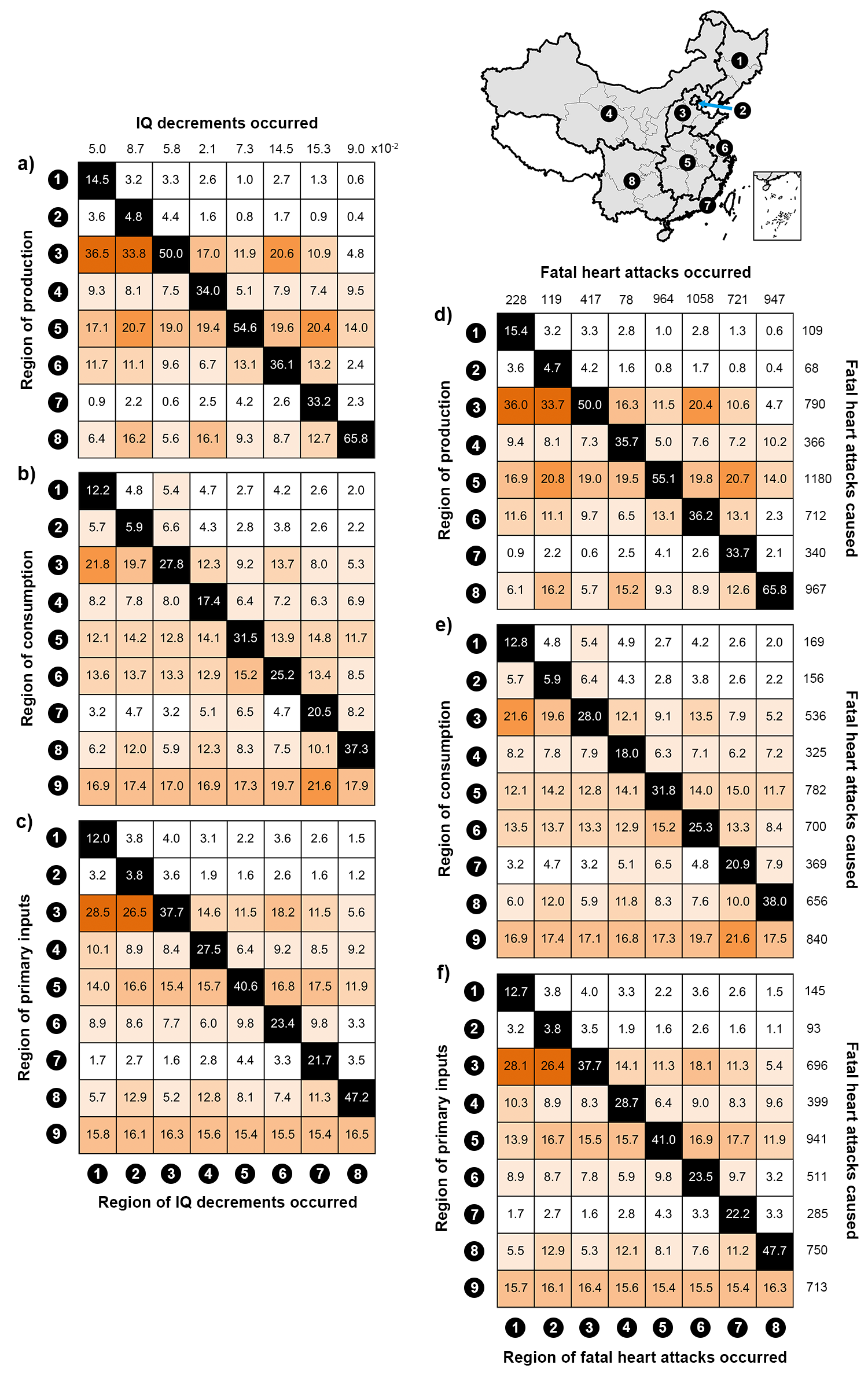 研究发现,海鱼、淡水鱼和大米等食物的摄入是中国大陆人群最主要的汞暴露途径。而这些食物主要产于中国东南部水稻种植区和鱼类生产区,研究称之为敏感地区。研究进一步发现,由最终消费驱动的地区间产品贸易使得汞由敏感地区(东南部沿海地区)向非敏感地区(西北内陆地区)转移,最终使全国人群避免了一部分的胎儿人均智商损失和汞关联性心脏病死亡。而由初始投入驱动的地区间产品贸易却使得汞由非敏感地区(北方地区)向敏感地区(南方地区)转移。