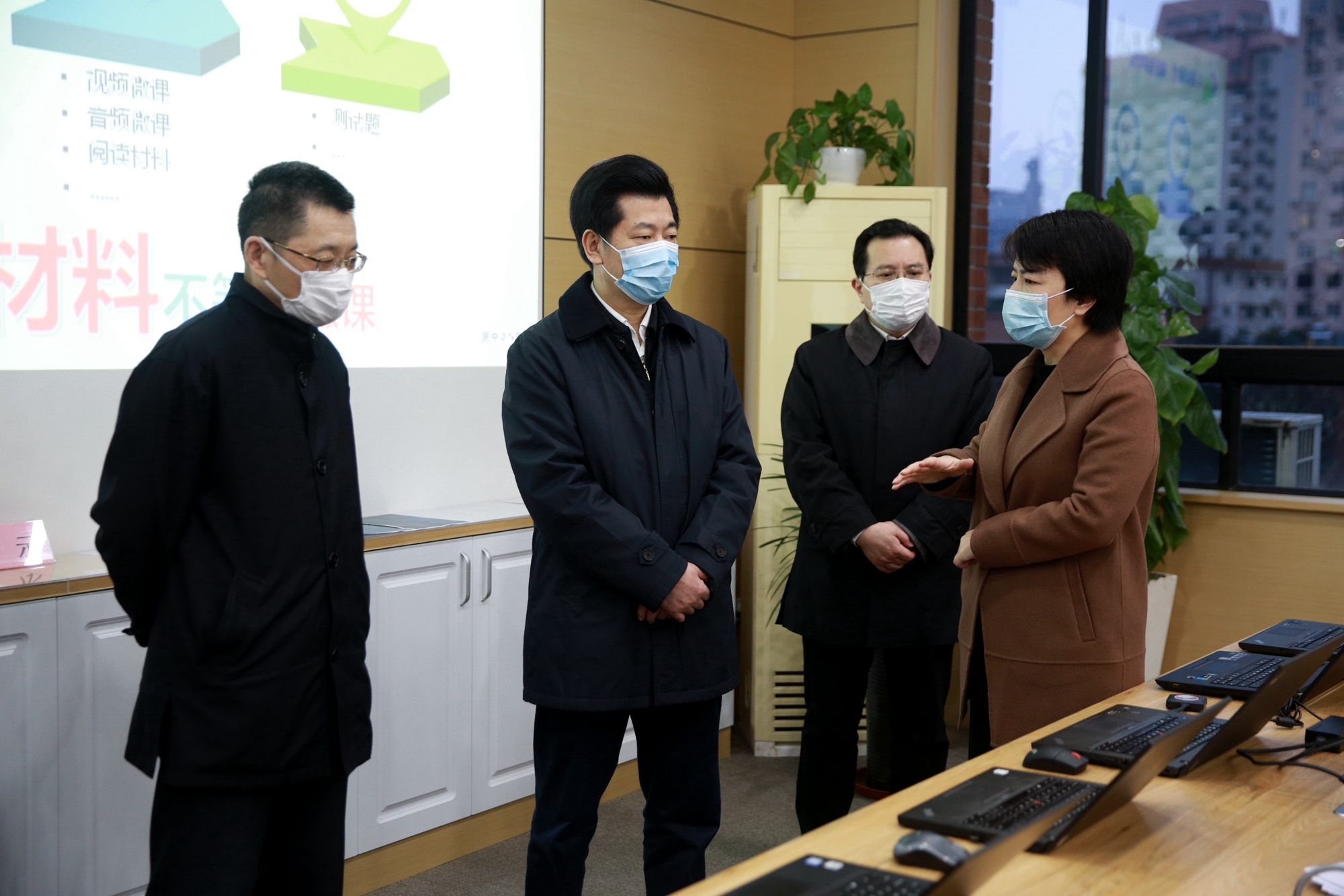 2月21日下午,市委常委、市纪委书记、市监委主任廖国勋带领市教卫工作党委书记沈炜,市教卫工作党委副书记、市教委主任陆靖,普陀区委书记曹立强等一行来到beat365英国官网网站中山北路校区,调研指导学校疫情防控工作。学校疫情防控领导小组成员、疫情防控工作专班成员等陪同检查。