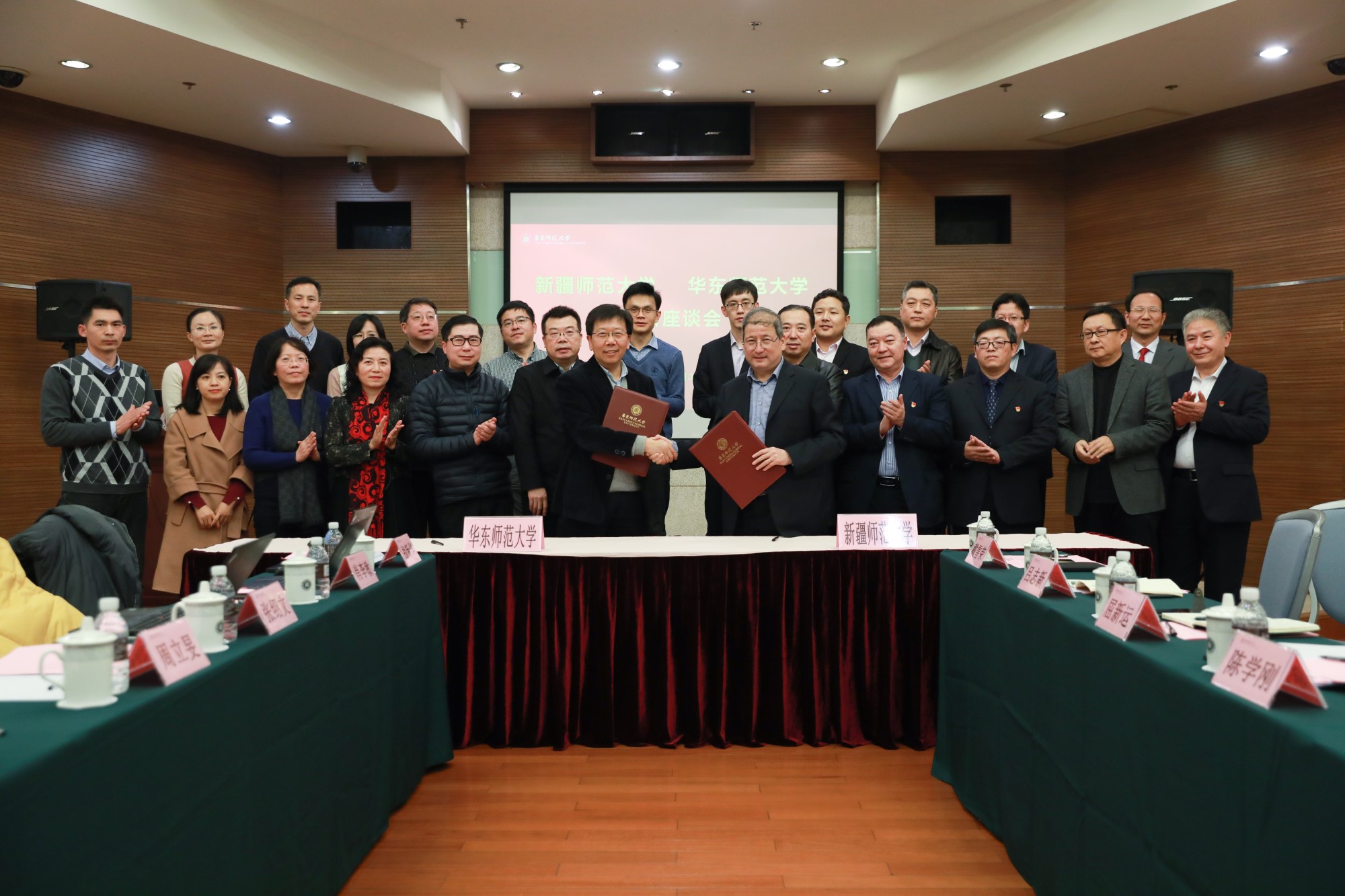 1月3日下午,beat365英国官网网站与新疆师范大学对口支援补充协议签约仪式暨对口支援工作座谈会在中山北路校区举行。新疆师大校长帕尔哈提•加拉力、副校长高子伟,beat365英国官网网站校长钱旭红、副校长孙真荣,以及两校相关部门、院系负责同志出席会议。会议由孙真荣主持。