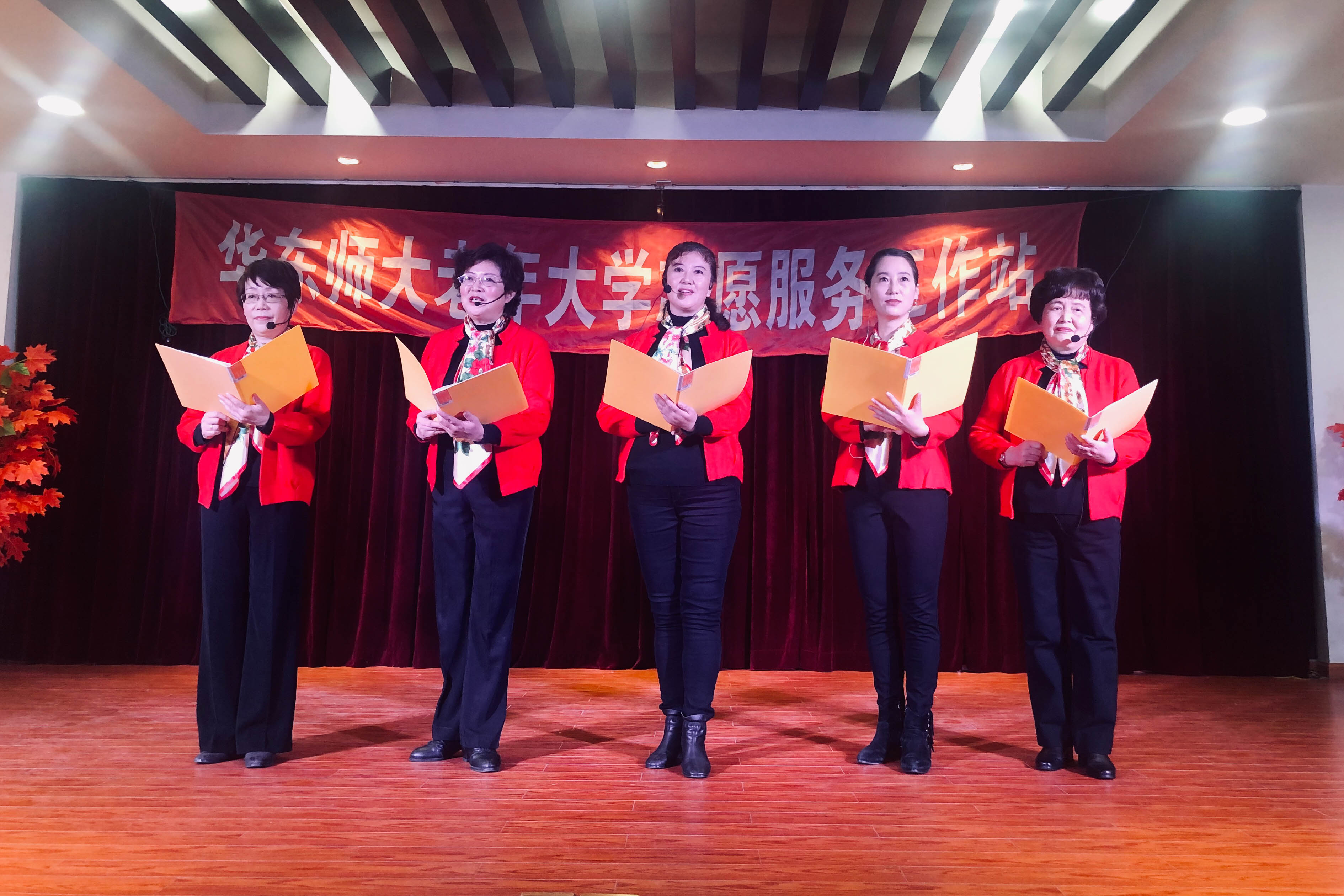 1月2日下午,beat365英国官网网站老年大学志愿者服务工作站前往松江区新桥敬老院进行慰问演出,在老年大学常务副校长裴建华的带领下,我校编织班、时装表演班、声乐合唱班、诗歌朗诵班、民族舞蹈班、二胡班和越剧、沪剧班等师生近50人参加了此次慰问活动。