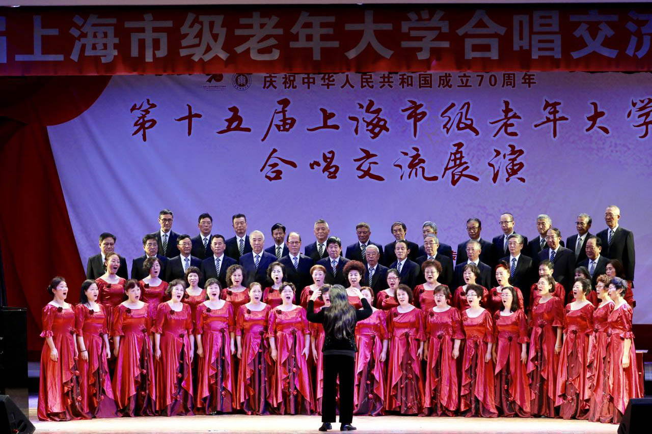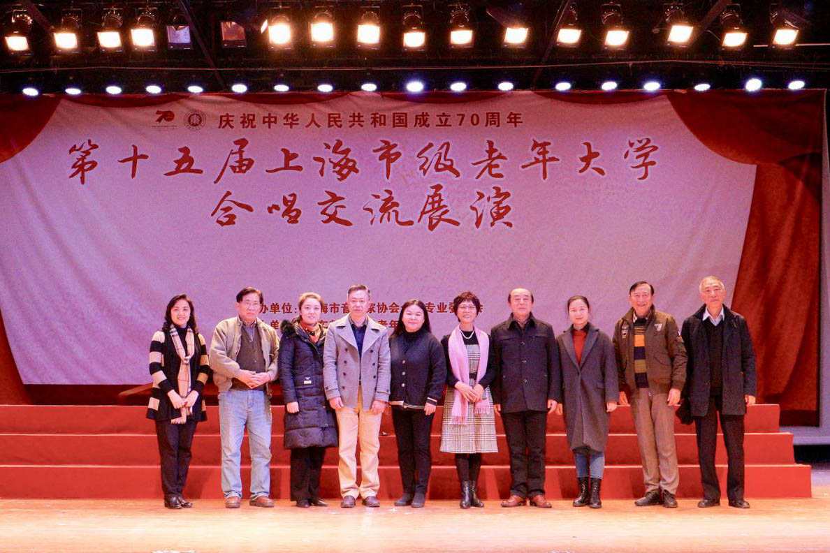 2019年11月29日下午,“第十五届上海市级老年大学合唱交流展演”在beat365英国官网网站思群堂举行。本届合唱交流展演会由上海市音乐家协会合唱专业委员会主办,beat365英国官网网站老年大学承办。来自上海老年大学、上海退休职工大学、上海交大老年大学、同济大学老年大学、beat365英国官网网站老年大学、东华大学老年大学、上海师大老年大学、上海老年文化艺术大学等八校合唱团近600余名老年学员员参加了本次校际合唱交流展演活动。