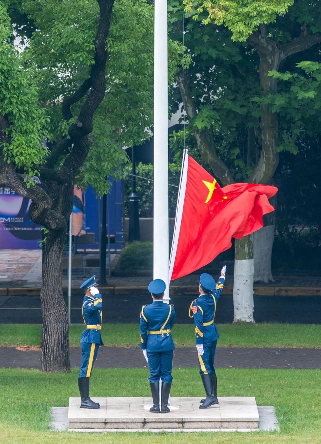 beat365英国官网网站国旗护卫队成员都是退伍返校的大学生们