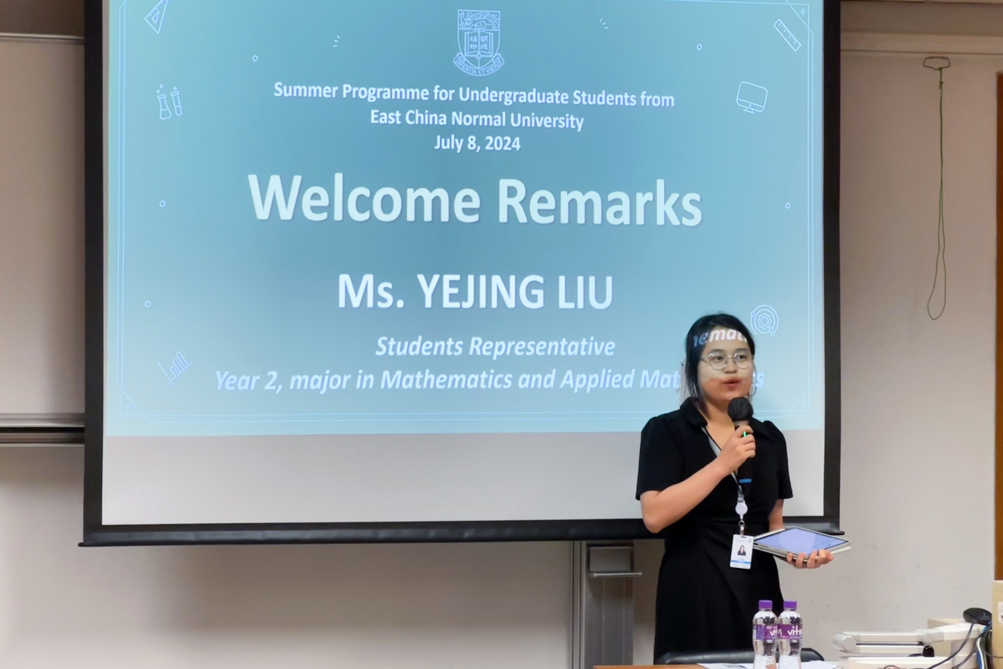 7月8日上午,项目举行了开班仪式,理学院George Viche AKOM教授表达了对师大学子的欢迎,回顾了两校所建立的深厚友谊,并对交流活动寄予祝福和期待。香港大学学生代表Vera介绍了香港大学的历史背景、教学环境。beat365英国官网网站学生代表、数学与应用数学专业本科生刘叶静感谢两校为项目交流合作付出的努力,表达了对项目的期待。