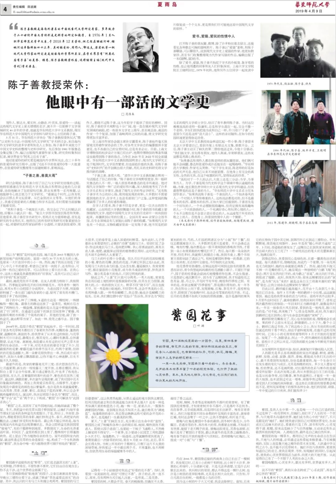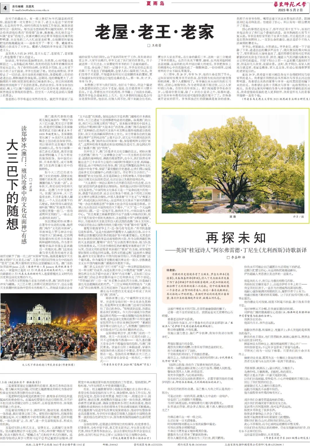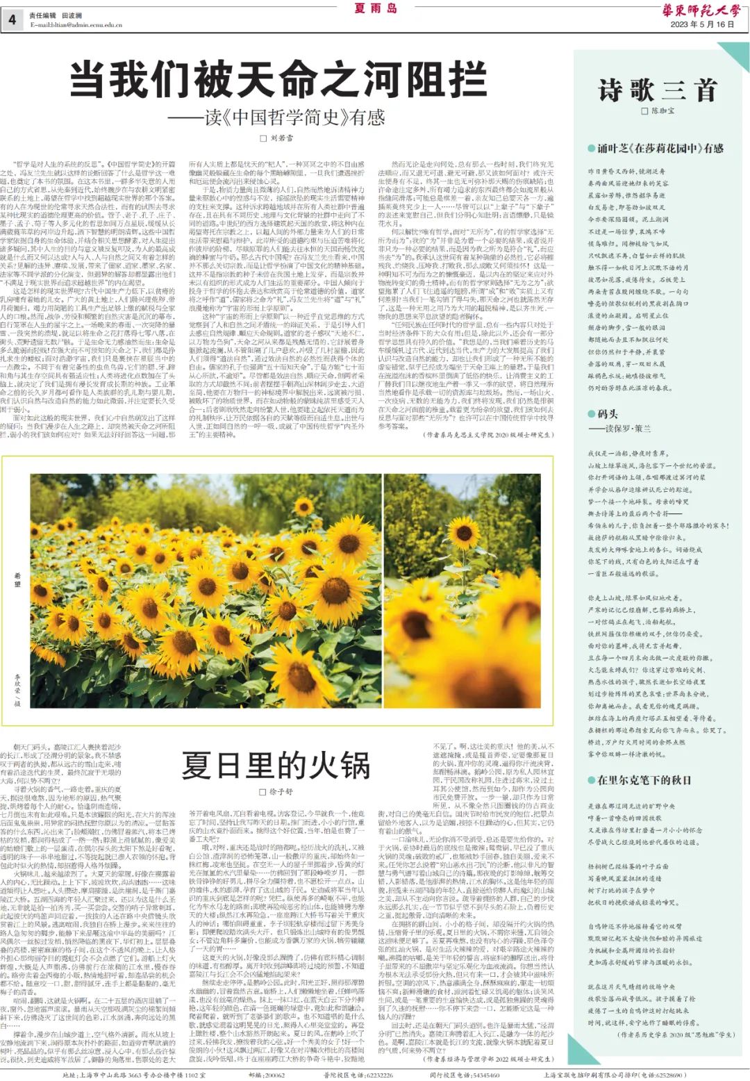 beat365英国官网网站校报副刊“夏雨岛”有着悠久的历史,长期以来发表了在校师生、离退休教师和广大校友的大量作品,她是赵丽宏、王小鹰、孙颙、陈丹燕、格非等一大批著名作家、诗人早年成长的文学园地,更是记录了beat365英国官网网站七十多年来筚路蓝缕弦歌不辍的办学历程,是beat365英国官网网站人永恒的精神家园。