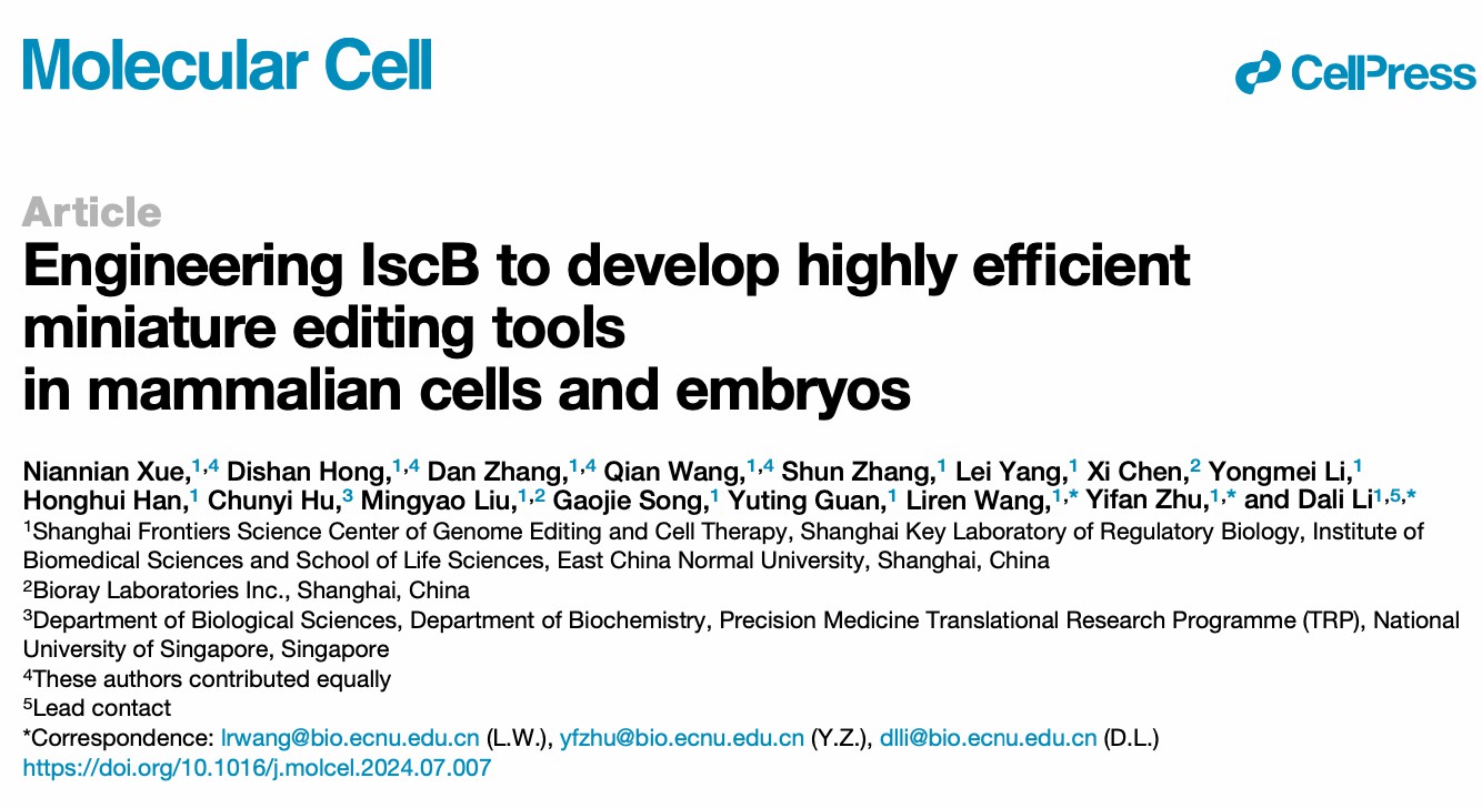 日前,beat365英国官网网站生命科学学院李大力团队报道开发出了一种全新的基于 IscB 的超高活性、且体积更小的基因编辑工具并率先实现了小鼠体内高效编辑,该项研究成果为多元化的基因治疗策略提供了新的工具。2024年8月22日,国际知名学术期刊《分子细胞》在线发表李大力团队这一研究成果,并被选为封面文章。