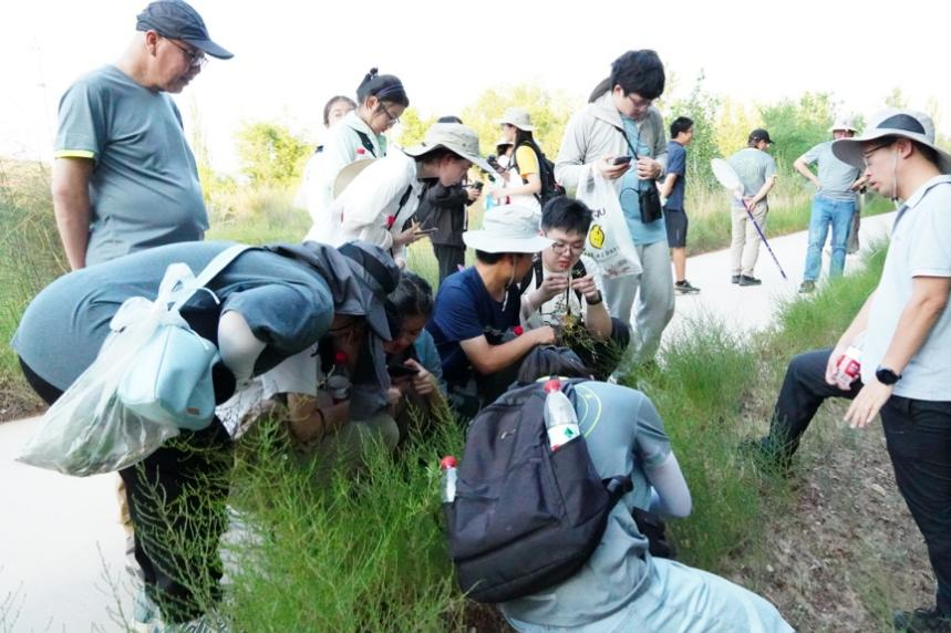 转战宁夏中卫,沙坡头野外站内一片片防风固沙试验田是无数研究者对抗风沙的坚韧宣言,漫天黄沙中素未谋面的沙生植物展现着生命的顽强。吴忠水稻田里,学生们穿梭其间采样的同时,也领略着“天下黄河富宁夏”的丰富水资源,灌溉出西北干旱中的一抹翠绿与生机。内蒙古腾格里的广袤沙漠中,师生们在进行沙生植物样方调查时,偶遇荒漠麻蜥穿梭于沙冬青群落间,一场意外的“科学追逐”,让本站课程变得更加刺激。