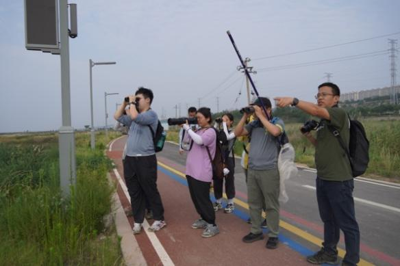 运城盐湖边师生清晨观鸟