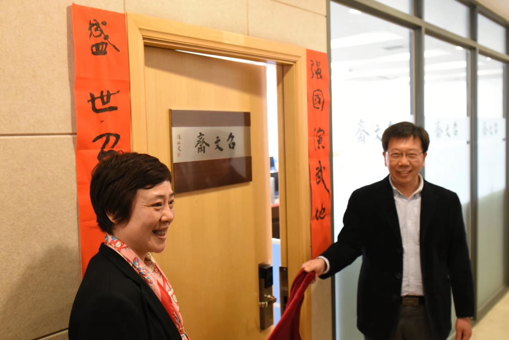 校长钱旭红、上海华申中外文化交流服务有限公司总经理韩松美为召文斋揭牌