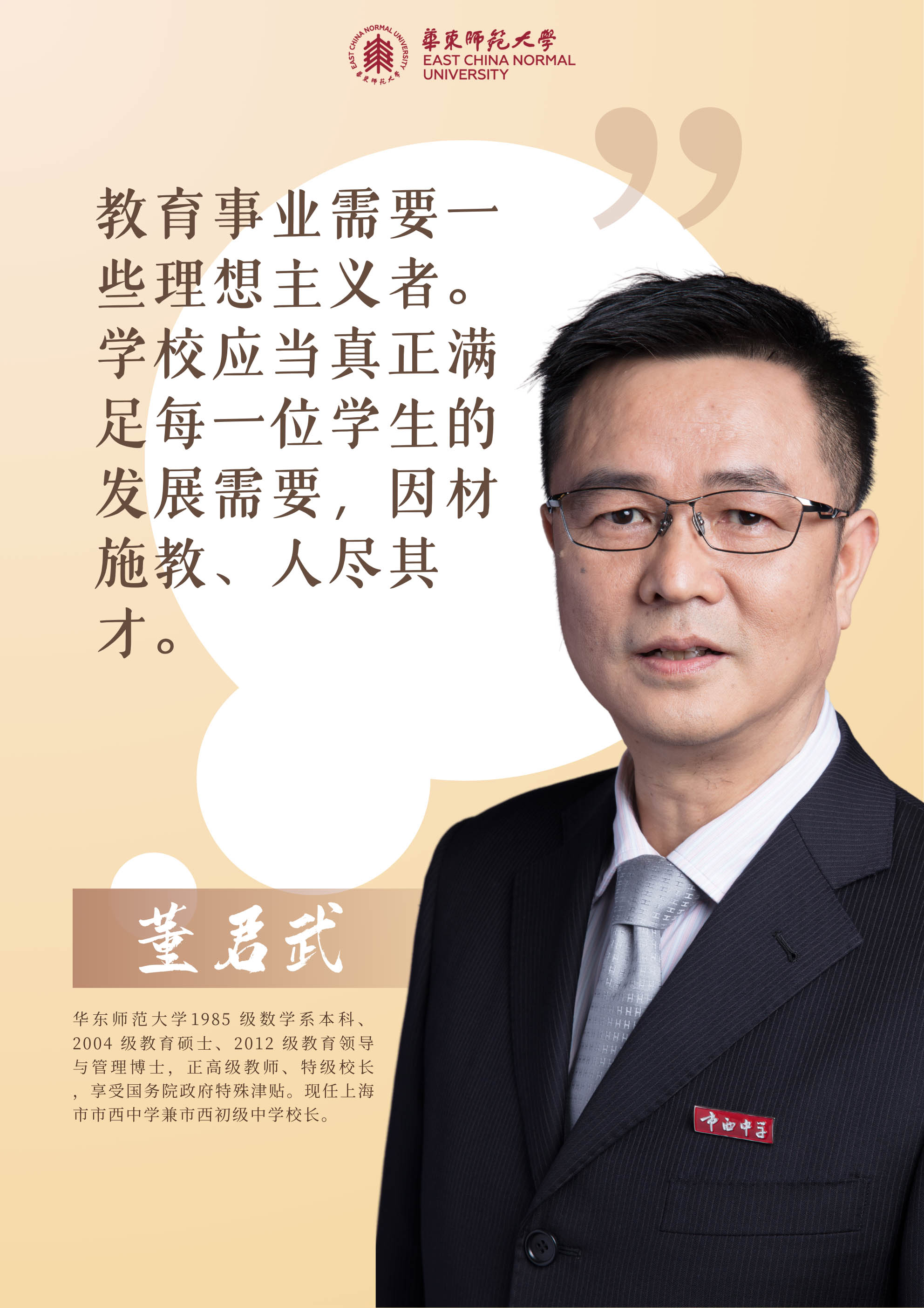 值此第40个教师节之际,beat365英国官网网站特别邀请了15位教育领域的杰出校友,通过他们对于教育家精神的理解、践行与传承,进一步弘扬教育家精神,让教育家精神成为照亮每一名教育工作者的精神力量,让教育工作者在弘扬教育家精神的实践中逐步成长为担当时代重任的大国良师。
