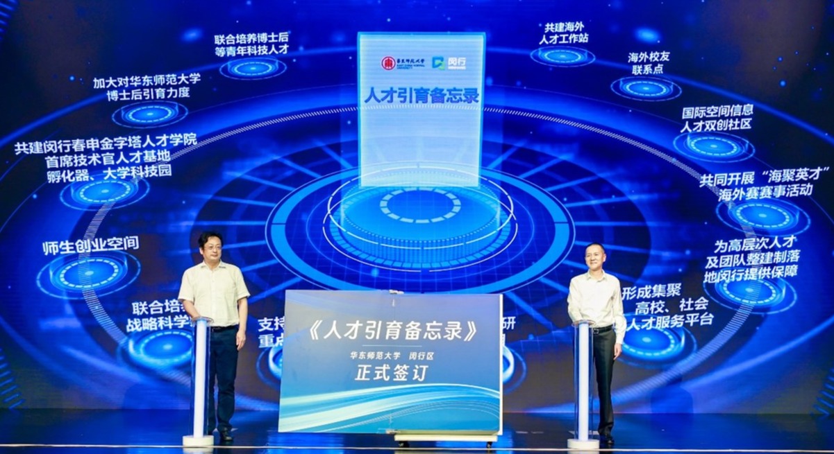 启动仪式上,施国跃代表学校与闵行区签订人才引育备忘录,立足“大零号湾”科技创新策源功能区,致力于共同打造集人才培养、科学研究、技术创新、产业孵化等功能于一体的人才发展生态系统。