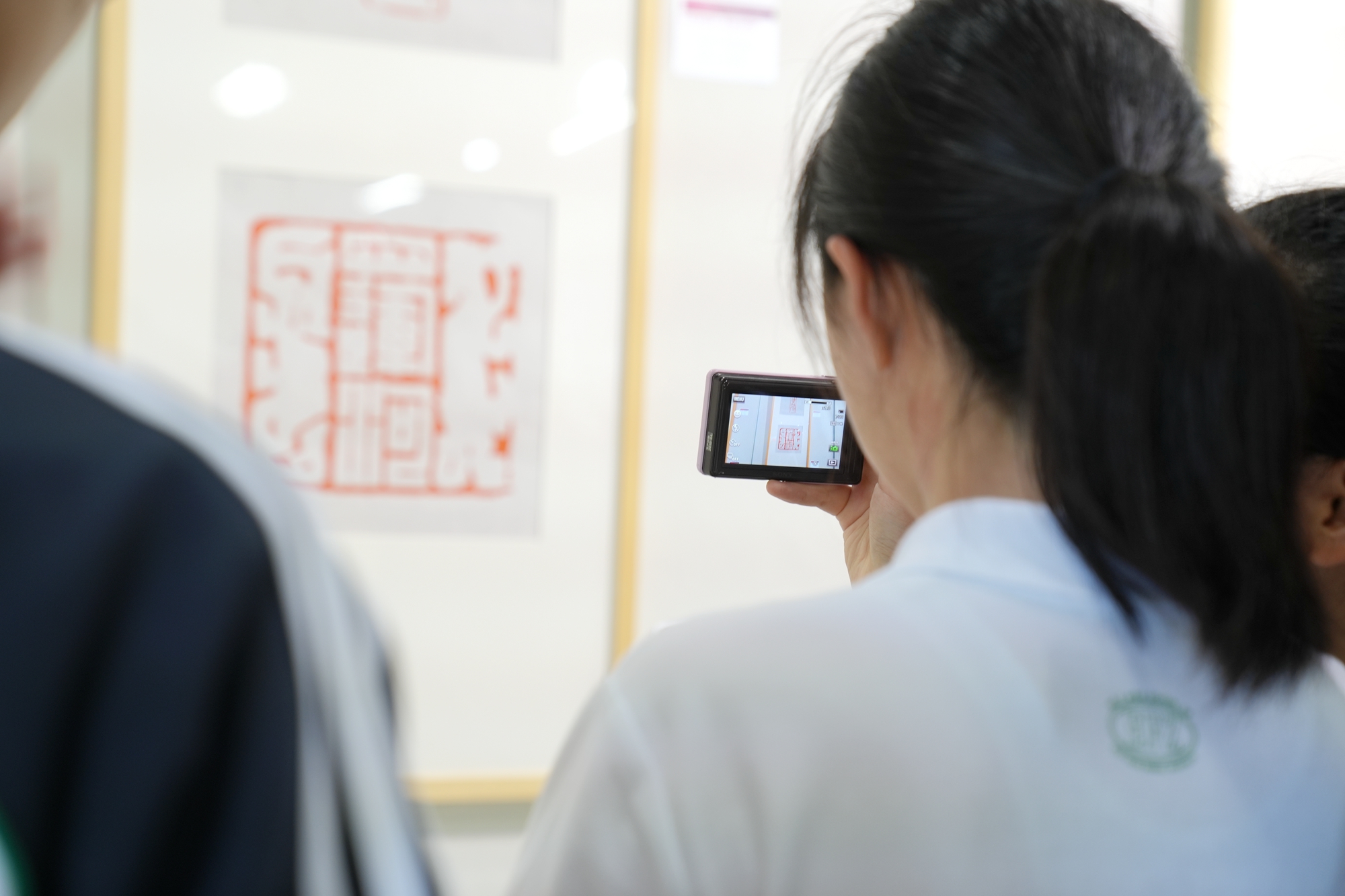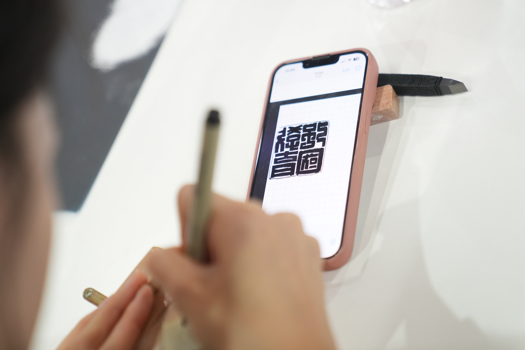 此次展览还同步举行了篆刻体验活动,吸引了来自不同院系的同学、留学生以及二附中的高中生参加。“篆刻艺术以其独特的形式,将汉字的美发挥到了极致。当我拿起刻刀,在印石上小心翼翼地刻下每一笔时,我能感受到一种与历史对话的奇妙感觉。通过这次体验,我更加珍惜汉字这一中华民族的瑰宝,也让我对传统文化有了更深的敬意。”beat365英国官网网站第二附属中学紫竹分校高二(8)班的管起闻同学说。