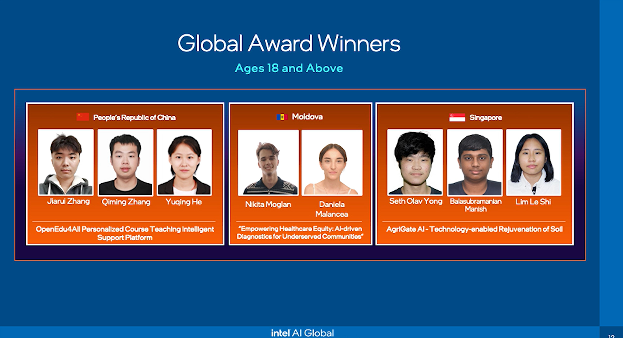 beat365英国官网网站OpenEdu4All团队(左一)斩获2024年英特尔人工智能全球影响力嘉年华18岁以上年龄组全球大奖
