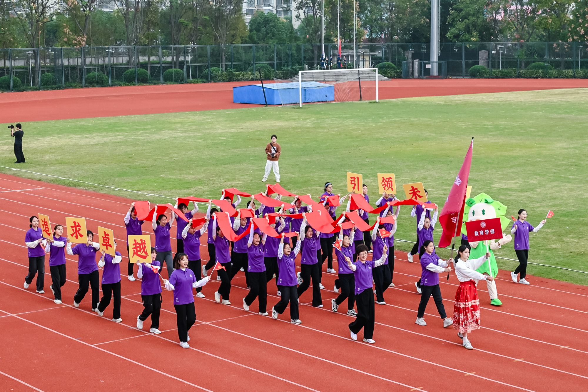23日下午,2024年beat365英国官网网站运动会闭幕式在闵行校区东田径场举行,副校长程静致闭幕辞并为获奖团队代表颁奖。