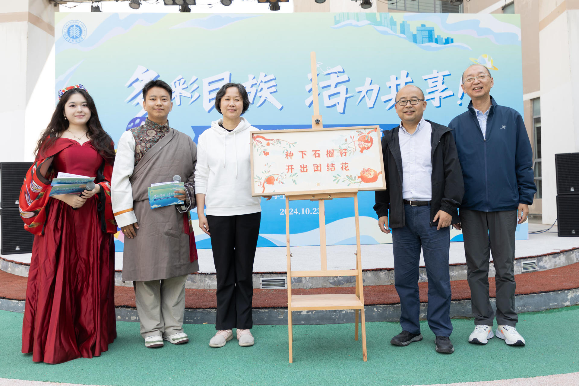 金秋十月,丹桂飘香,10月23日,“多彩民族·活力共享”2024年民族体育文化交流活动在闵行校区C区小广场举行。校党委常委、副校长程静,党委学生(研究生)工作部部长赵健,统战部副部长章平出席活动开幕式。汉族、满族、藏族、哈萨克族、维吾尔族等各民族师生倾力合作、倾情奉献,通过一系列精彩纷呈的活动,展现独特魅力。