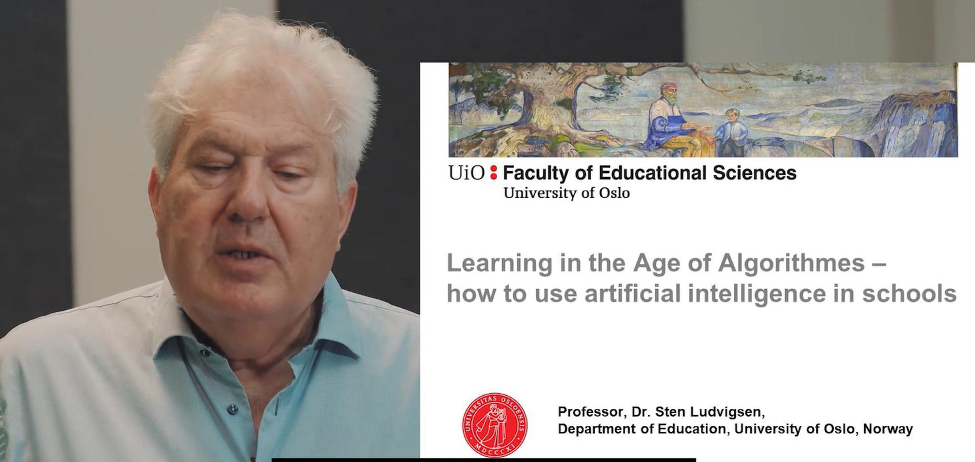 挪威奥斯陆大学教育科学学院主任Sten Ludvigsen教授以“Learning in the Age of Algorithmes -How to Use Artificial Intelligence in Schools”(算法时代的学习—— 如何在学校中使用人工智能)为题,介绍了挪威“Learning in the Time of Algorithms”(算法时代的学习)这一设计研究。