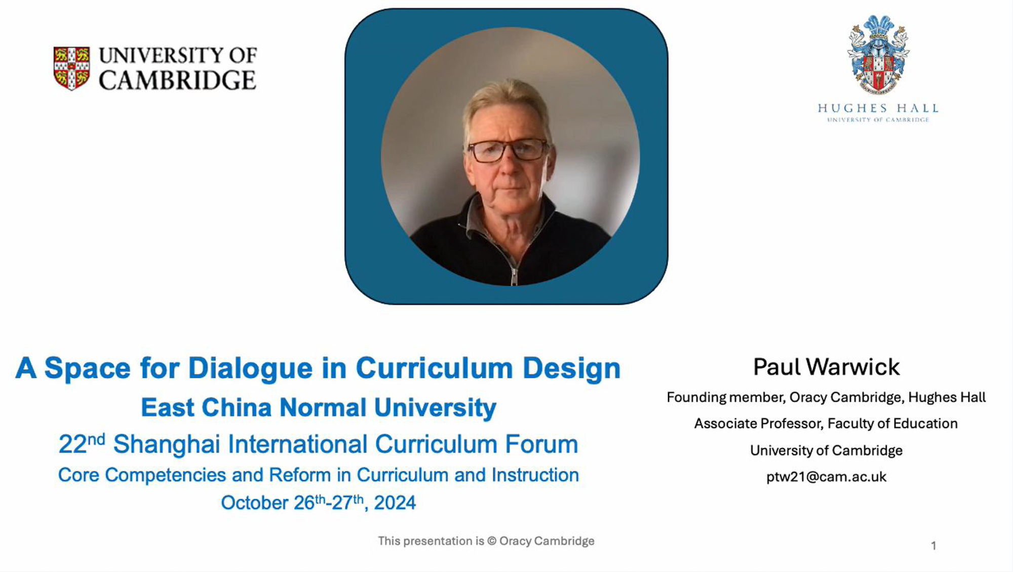 英国剑桥大学Paul Warwick教授作了题为“A Space for Dialogue in Curriculum Design”(课程设计中的对话空间)的报告,介绍了以对话为核心的课程设计所需的人员参与、理论支持、技术支持。