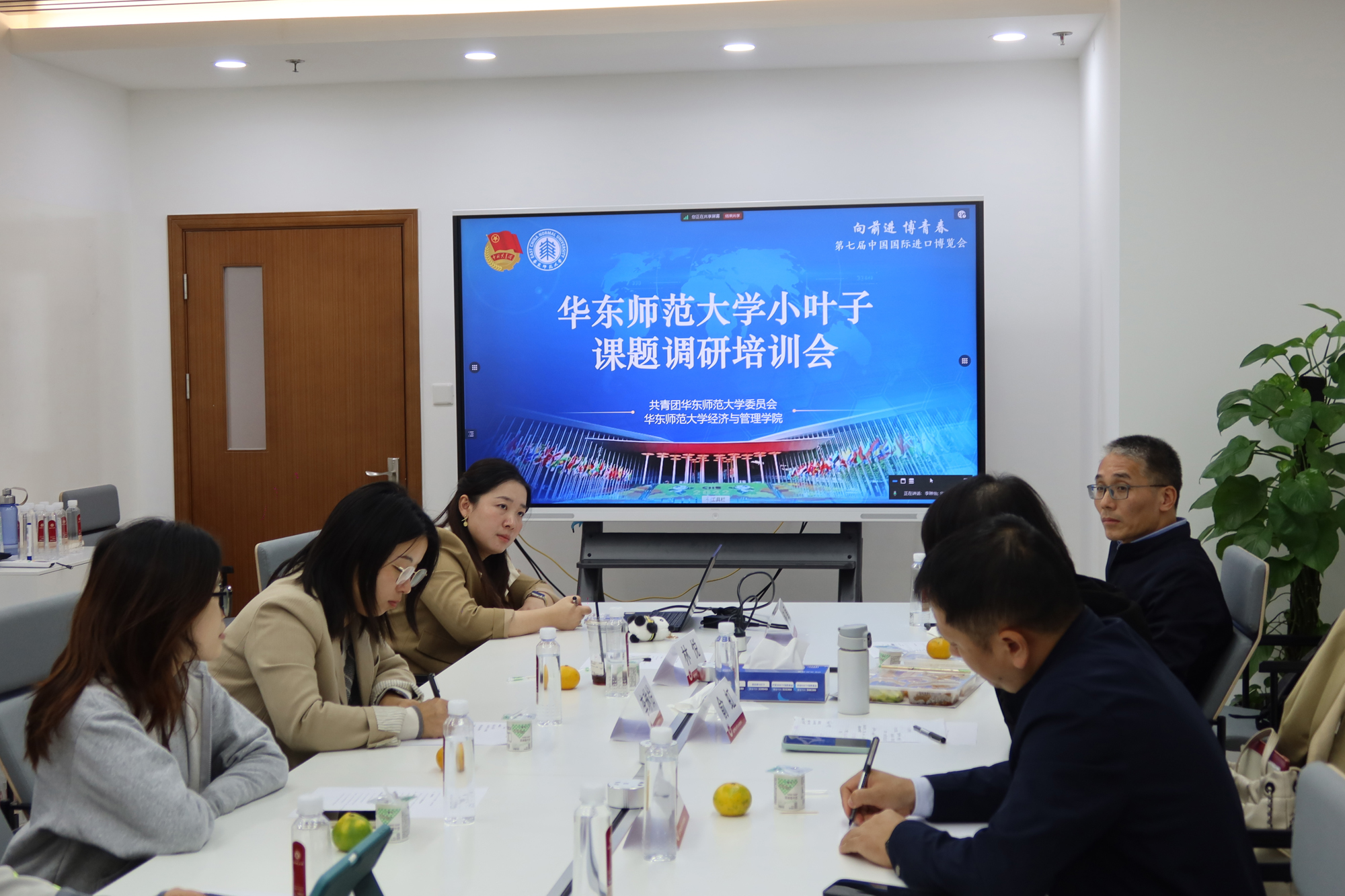 同时,为进一步提升“小叶子”理论水平与专业调研能力,校团委联合经济与管理学院第十八届“挑战杯”红色专项全国一等奖“进博会研究”课题组,召开第七届中国国际进口博览会beat365英国官网网站“小叶子”调研服务队培训会议。