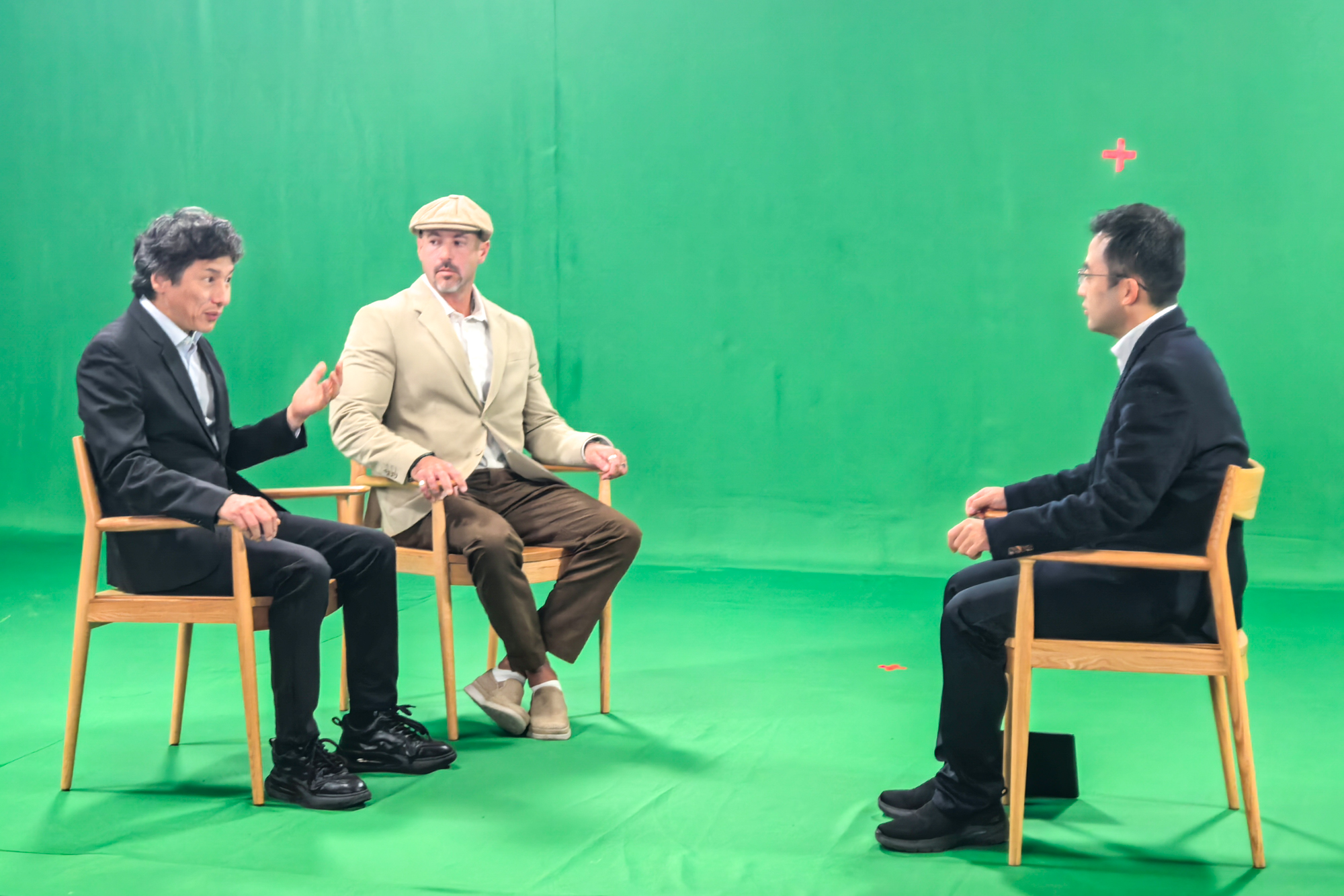 我校化学与分子工程学院姜雪峰教授(左一)作为科学导师,参加“桌布论坛”