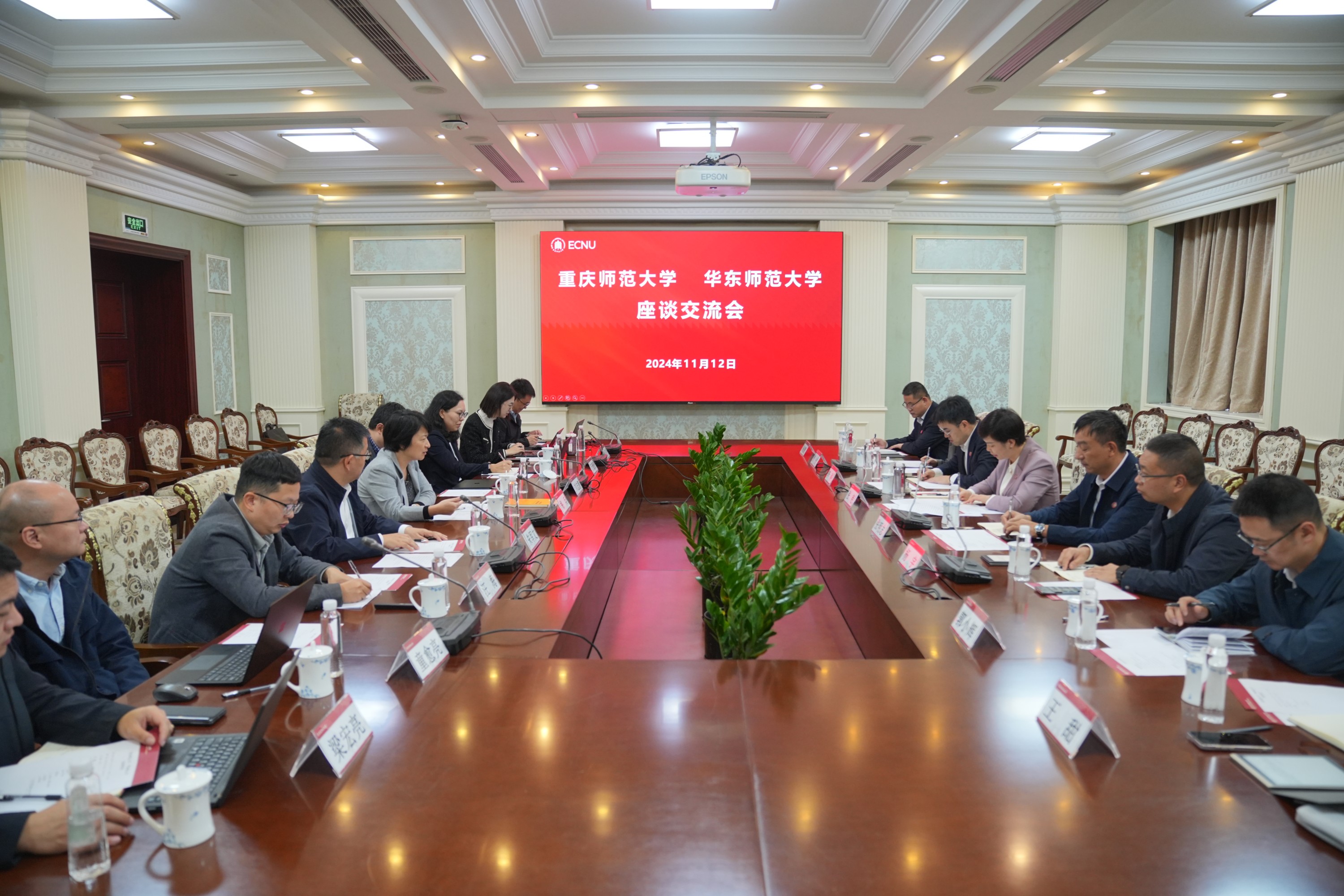 11月12日下午,校党委书记梅兵在普陀校区会见了来访的重庆师范大学党委书记张艳一行。双方围绕党建工作、人才队伍建设、清廉校园建设、数字校园建设、师范生教育、学校综合改革等方面进行了深入交流。座谈会由校党委常委、党委组织部部长兼机关党委书记朱军文主持。