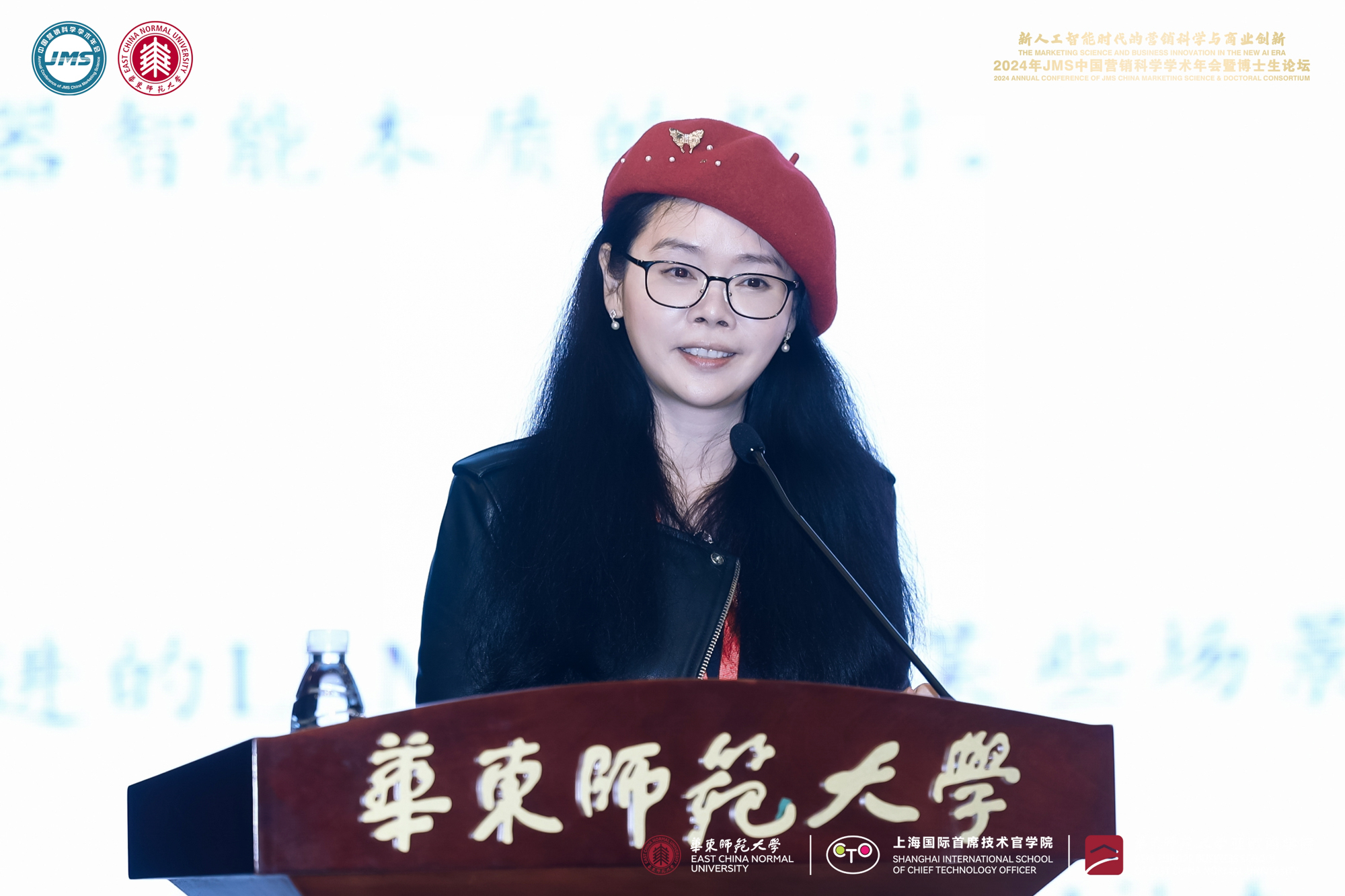 北京大学光华管理学院副院长沈俏蔚教授以“数智技术的营销应用:福利与治理视角”为题进行主旨演讲。她指出,营销科学是目前生成式AI最大的应用领域,同时,数智技术应用面临着隐私保护、人机交互、数据治理、算法偏见等潜在问题。技术的快速发展迫切需要学术研究跟进。