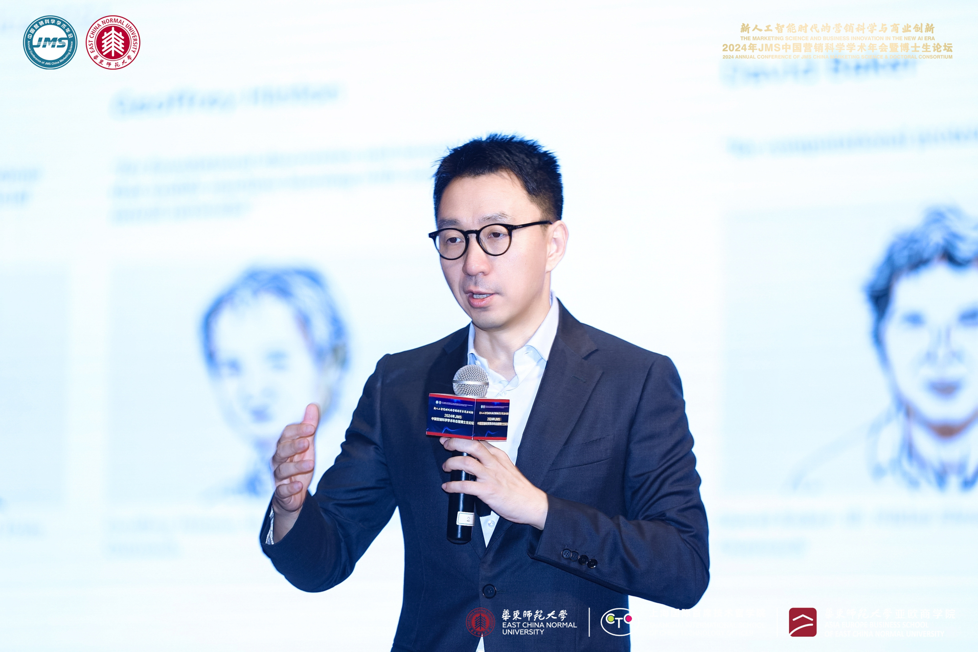 在闭幕式上,北京大学博雅特聘教授、光华管理学院副院长,《营销科学学报》主编,国家杰出青年科学基金获得者张影教授作为大会特邀嘉宾,以“人工智能在行为研究中的运用探索”为题进行主旨演讲。他分析了在行为研究领域,以大语言模型(LLMs)为代表的人工智能应用,并指出行为个体与社会交互方式发生变化,个体信息更加丰富、个体与社会交互方式的智能化,都使学者的可及数据增加。